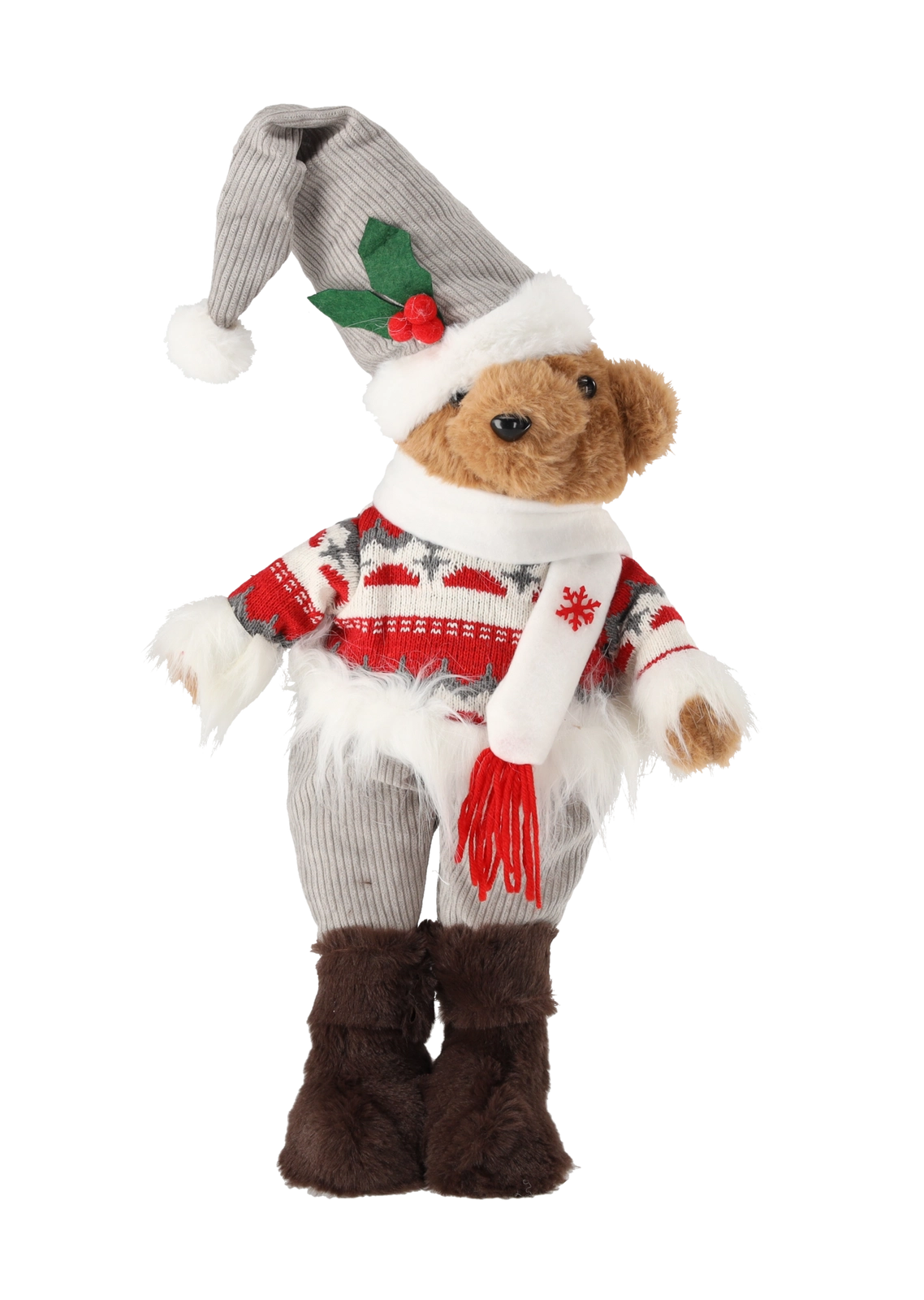 Create a magical holiday atmosphere with a decorative plush teddy bear standing 50 cm tall. Each piece is dressed in stylish winter clothing with rich details that highlight its festive character. The soft design is pleasant to the touch and brings warmth to any interior.