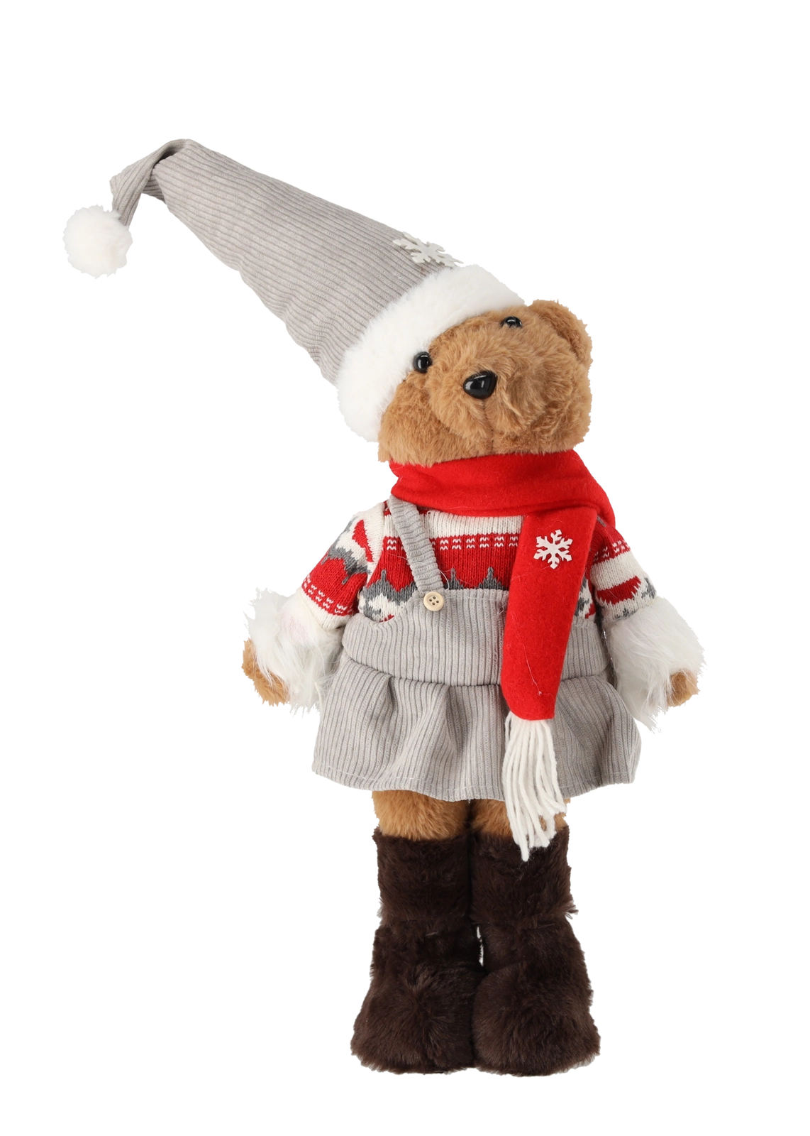 A cute 50 cm Christmas teddy bear brings a warm and cozy atmosphere to your home. Available in two versions – boy or girl – it’s ideal as a stylish Christmas decoration for a sideboard, table, or under the tree. Thanks to the soft, pleasant material and carefully crafted winter outfits, it will become a favorite ornament and a lovely gift.