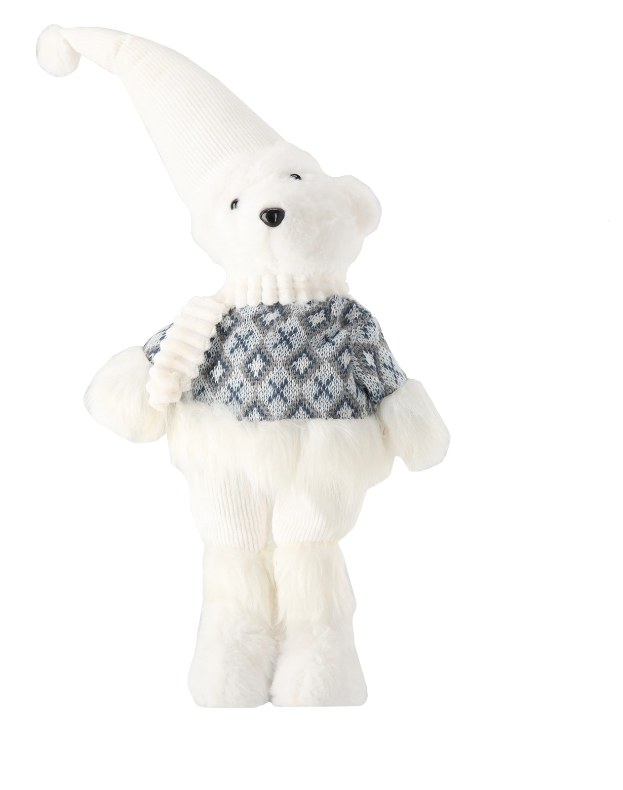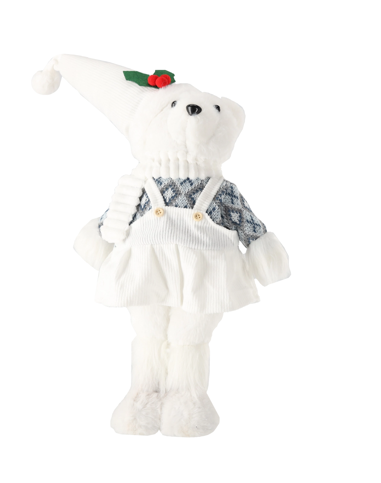 A cute white Christmas teddy bear standing 50 cm tall brings a magical holiday atmosphere to your home. Available in boy or girl versions, it features carefully crafted details and is ideal as an indoor Christmas decoration by the tree, on the mantel, or on the festive table.