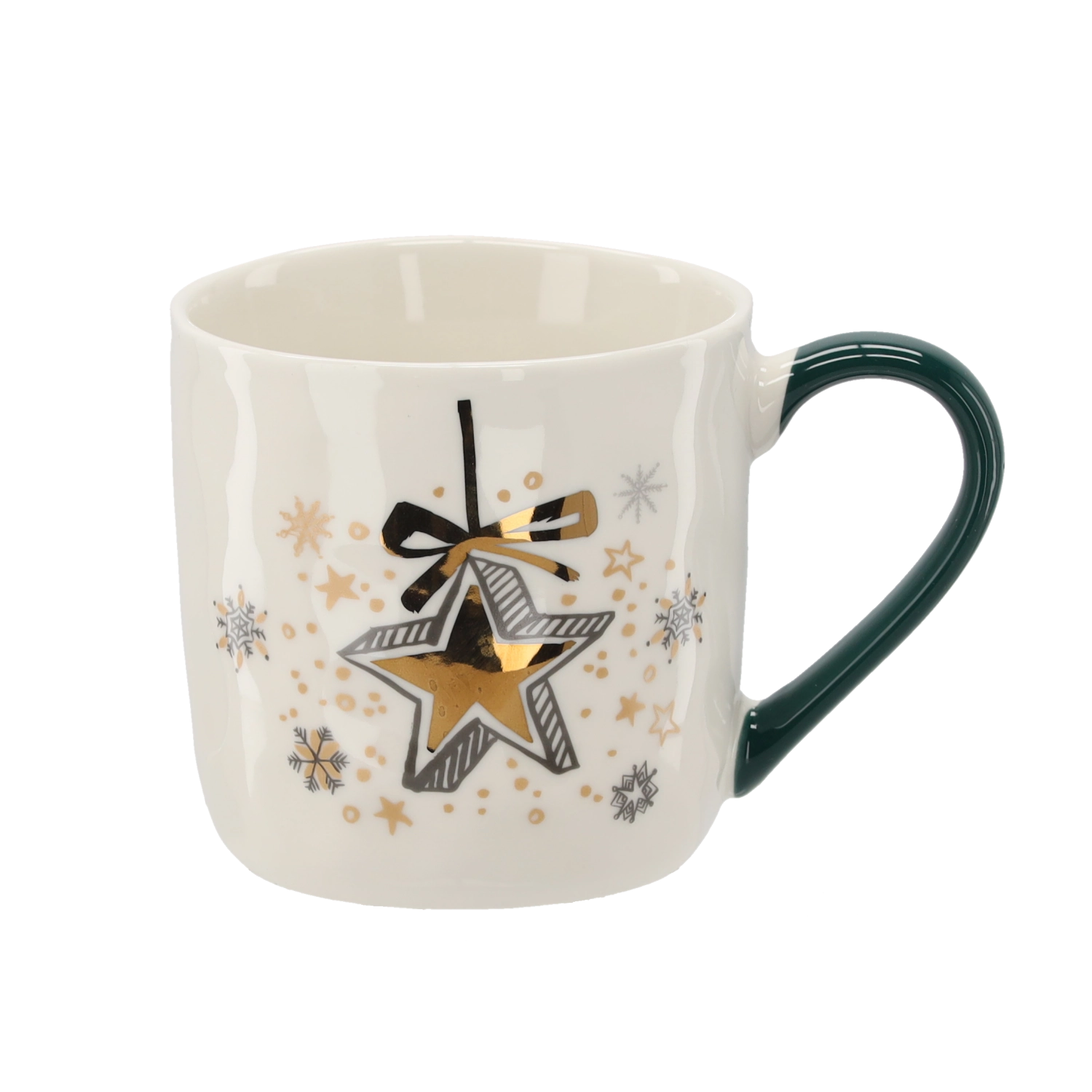 Treat yourself or delight your loved ones with a porcelain mug in a soft cream shade and festive details in gold, green, and white. The unique motifs of stars, bells, and baubles enhance the Christmas atmosphere and turn every hot drink into a pleasant ritual.