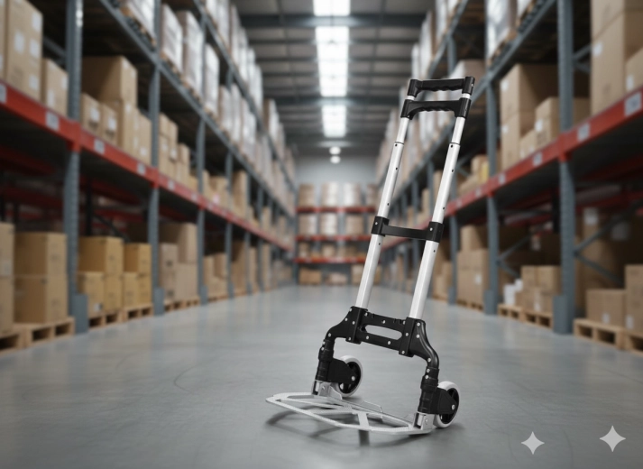 The adjustable handle height and wide folding base ensure comfortable and safe transport of boxes and luggage.