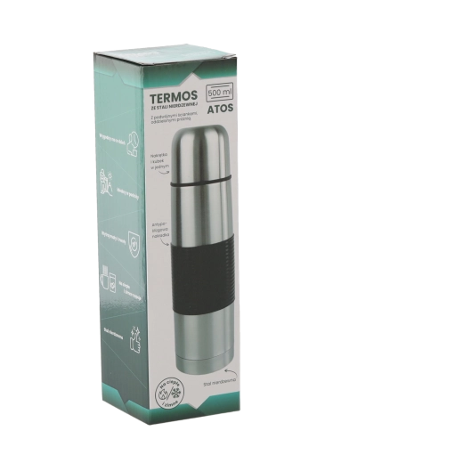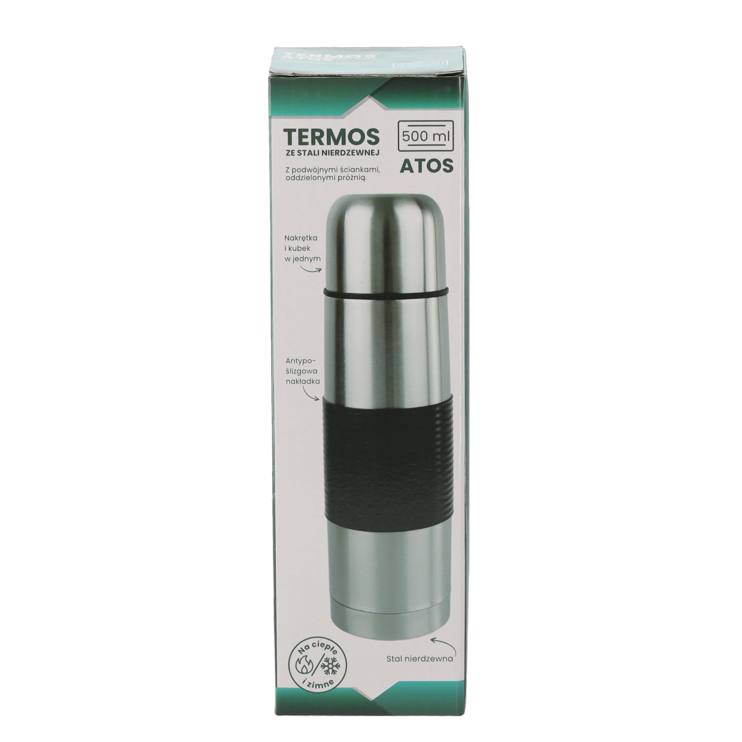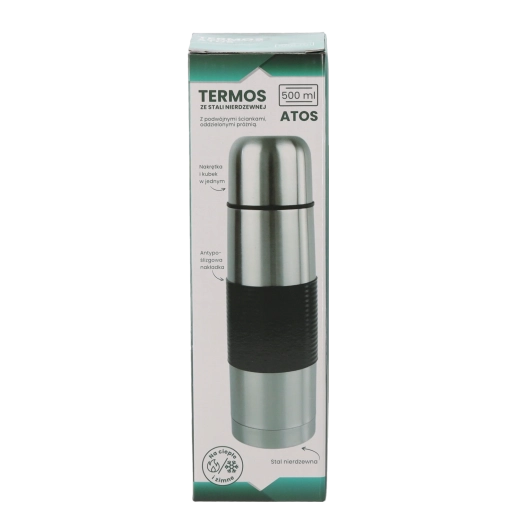 Keep your favorite drink at the right temperature all day. The Atos 500 ml thermos uses a double-walled stainless steel construction that provides excellent thermal insulation and long-lasting performance.