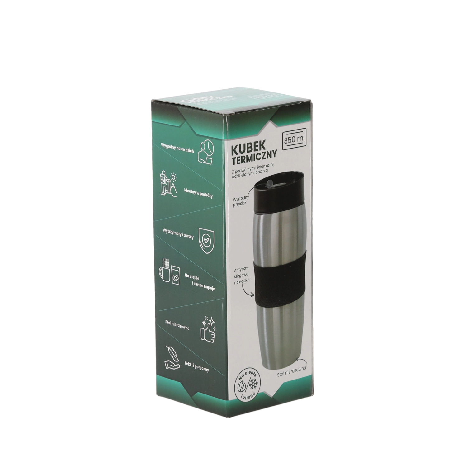 Enjoy your favorite drink anytime, anywhere. This 350 ml stainless steel travel mug is designed for everyday use on the go – in the car, at the office, or on trips. Thanks to its double-walled stainless steel, it keeps beverages hot or cold for longer, resists impacts, and is easy to clean.