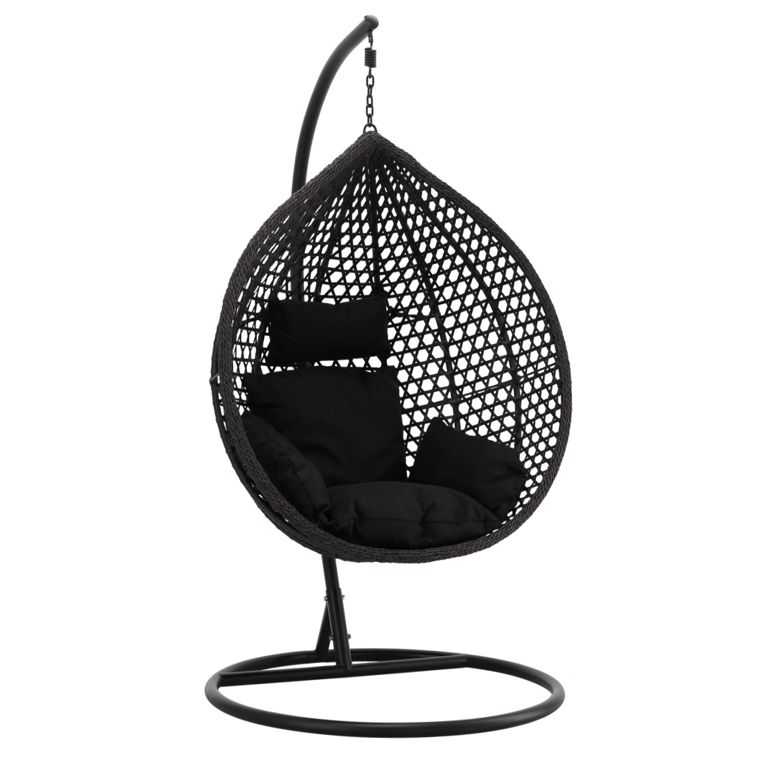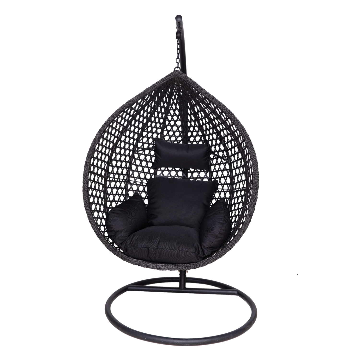 A robust steel frame with a circular base keeps the chair stable, while the chain suspension allows soothing rocking.