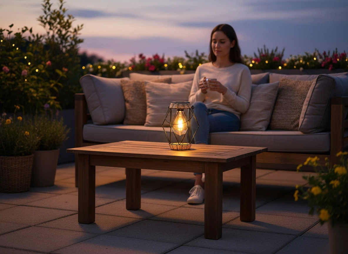 Just place it in the sun – the solar panel charges the built-in battery during the day, and in the evening the light automatically creates a pleasant atmosphere on the terrace, balcony, or in the garden. Its compact size fits a coffee table, stair steps, or as a decorative accent by your seating area.