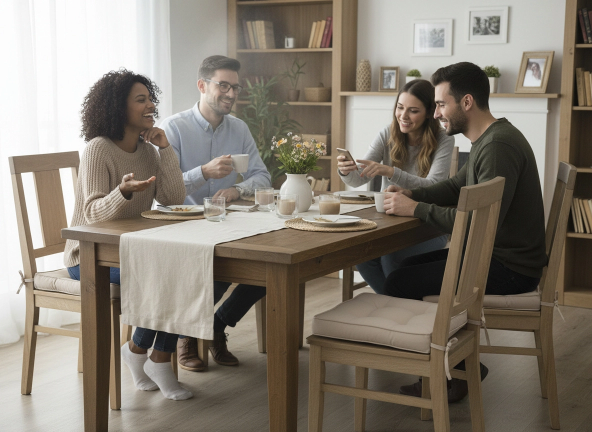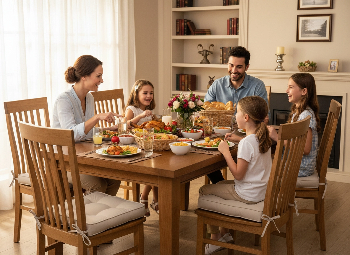 A thick layer of polyester fiber filling ensures soft yet stable seating all day long—ideal for dining and working.