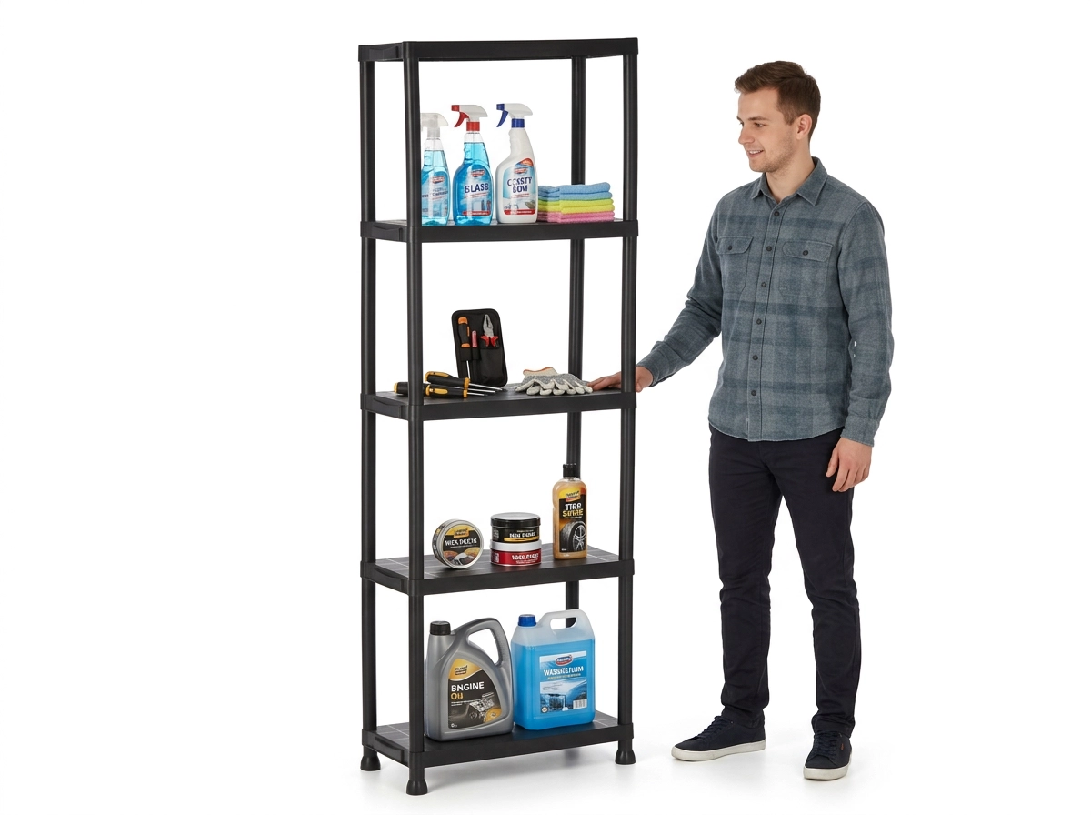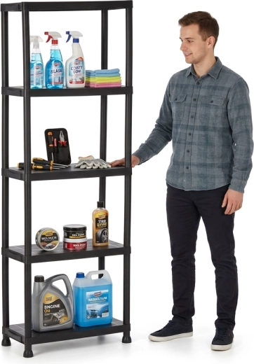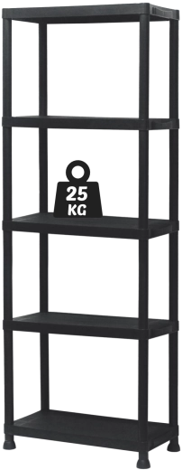 A practical and durable plastic shelving unit with 5 shelves offers space-saving vertical storage for a workshop, garage, cellar, or pantry. Each shelf holds up to 25 kg, while the open design ensures easy access and good ventilation. Thanks to its lightweight yet stable build, the unit assembles quickly, is easy to maintain, and helps keep any space organized.