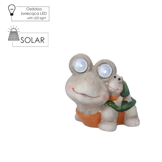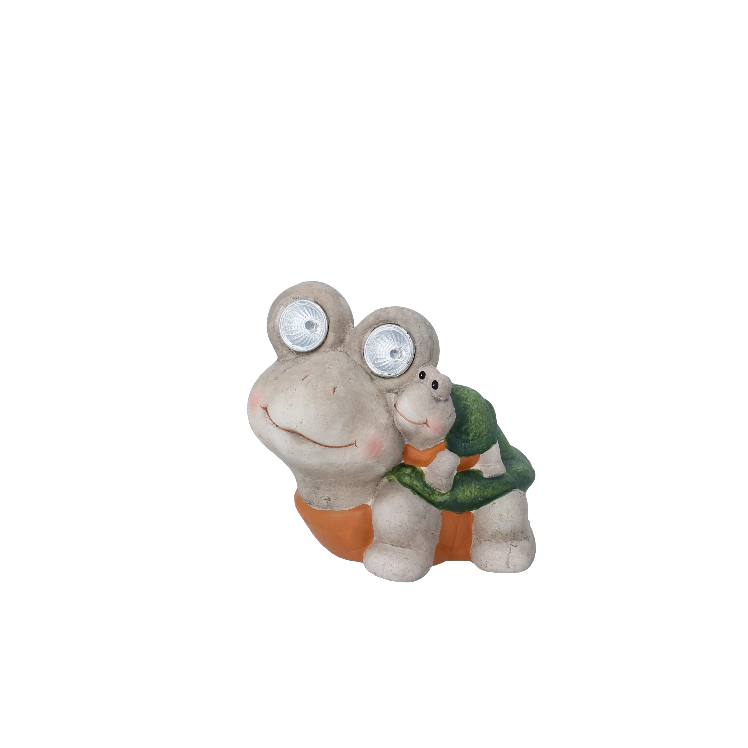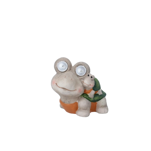 A stylish turtle figurine with glowing eyes (LED) brings a charming accent and soft illumination to your home or garden. The larger turtle features integrated LED eyes, while the smaller turtle on its shell is decorative without lighting. Natural color tones and detailed craftsmanship pair beautifully with plants, on a windowsill, terrace, or balcony.