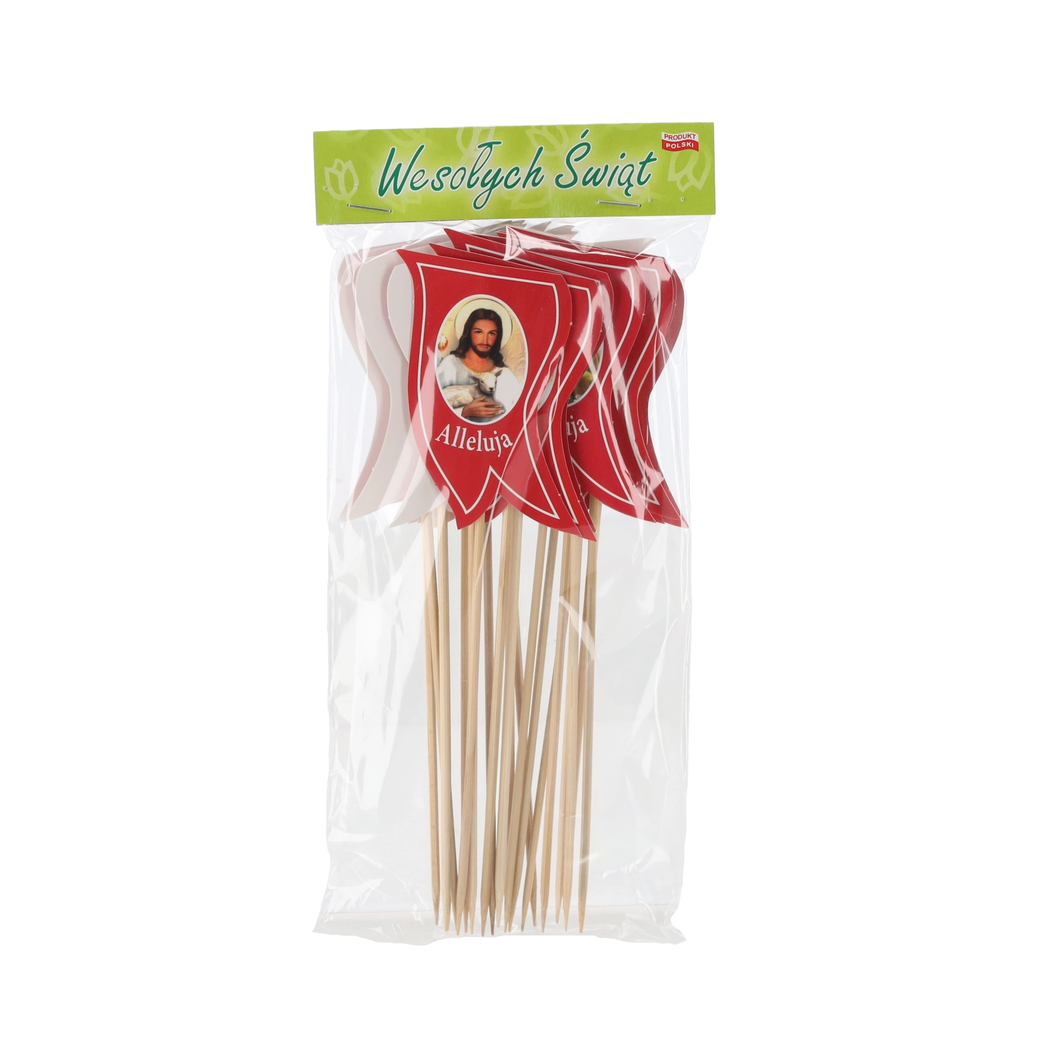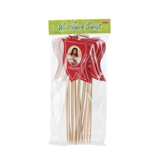 Brighten your spring celebrations with cheerful Easter flags, perfect for baskets and traditional desserts like mazurek. The set includes 20 pieces for easy and consistent decoration across multiple items or spaces. The lightweight paper material and simple application ensure quick styling with a striking festive effect.