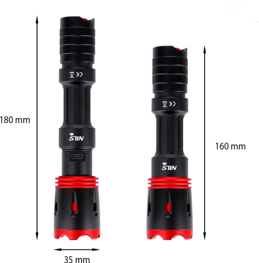 With three modes – 100%, 40%, and strobe – it adapts to every situation from outdoor use to emergencies. The integrated 18650 Li‑Ion battery charges conveniently via USB‑C, so you have power at hand anytime. The aluminum and ABS construction, IP65 rating, and wrist strap ensure durability, a secure grip, and safe carrying.