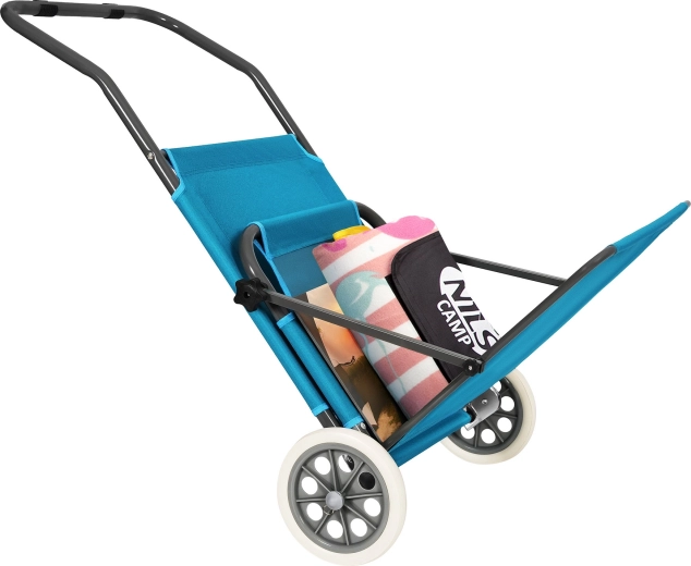 Enjoy comfort anywhere with the lightweight and durable NILS Camp NC3307 beach lounger. A stable steel frame, adjustable sun canopy, transport wheels for easy moving, and a durable 600D cover with PE layer make it an ideal choice for the beach, pool, campsite, or garden.