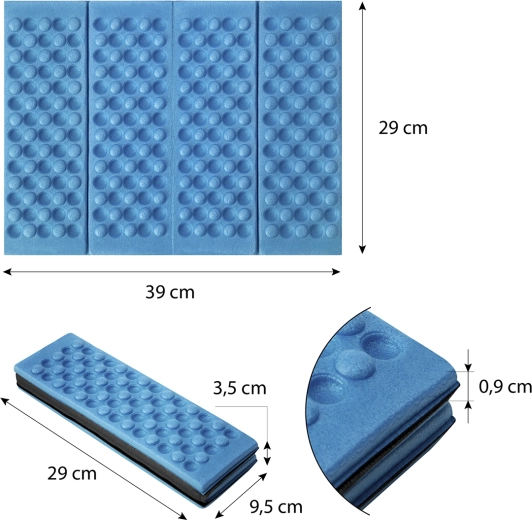 This folding foam seat pad is a reliable companion for camping, hiking, fishing, and festivals. The XPE material ensures low weight, high durability, and excellent insulation from cold and moisture. Thanks to the contoured surface, sitting is comfortable even on uneven terrain.