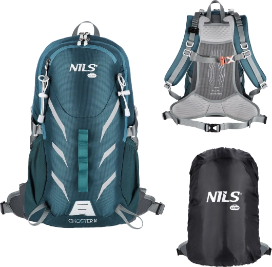 The lightweight and durable NILS Camp Ghoster hiking backpack with a 20 L capacity is ideal for both city and mountains. It offers a breathable back panel, padded straps with chest and hip belts, a hydration bladder sleeve, plenty of pockets for organized storage, and a rain cover for protection in wet weather. Reflective elements and a whistle in the buckle increase safety on the trail.