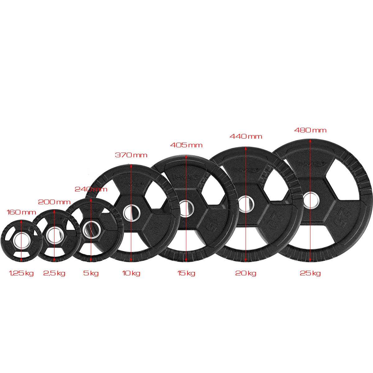 Looking for a reliable and durable addition to your gym? The 1.25 kg HMS Olympic plate is made of steel coated with hardened rubber, which reduces noise, minimizes wear, and protects your flooring. The standardized 50/51 mm hole ensures compatibility with Olympic bars and machine pegs.