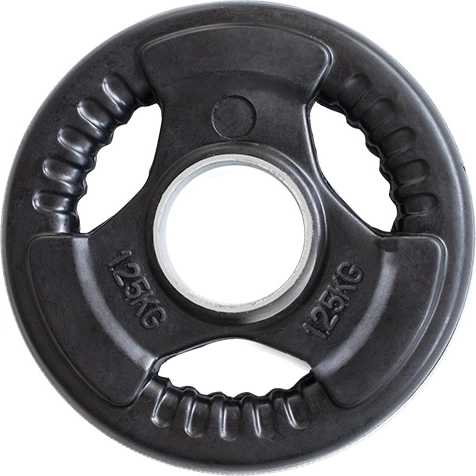 The HMS Tri‑Grip 1.25 kg is a durable rubber-coated plate designed for all types of Olympic bars with a 50 mm diameter. The ergonomic three-point handles enable quick, safe loading, easy transport, and accessory exercises without a bar. The rubber coating dampens noise, protects the floor, and extends the plate’s lifespan.