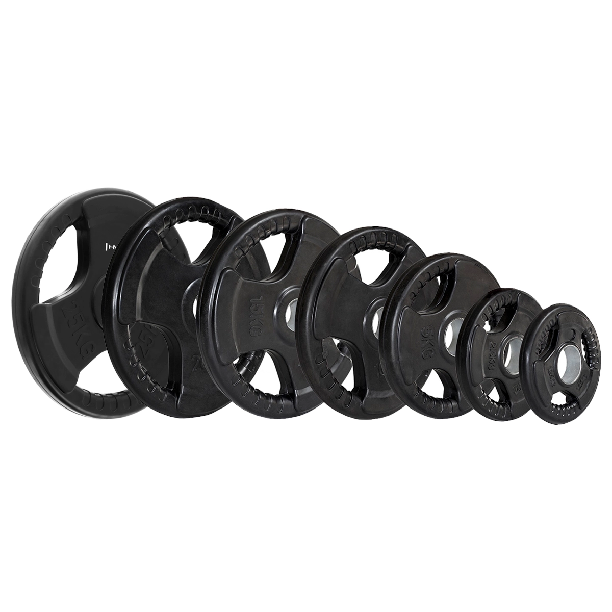The Tri‑Grip 15 kg Olympic plate combines durable construction with maximum user comfort. Thanks to the three large handles, it’s easy to carry, load, and remove from the bar, while the rubber coating absorbs impact, reduces noise, and extends service life.