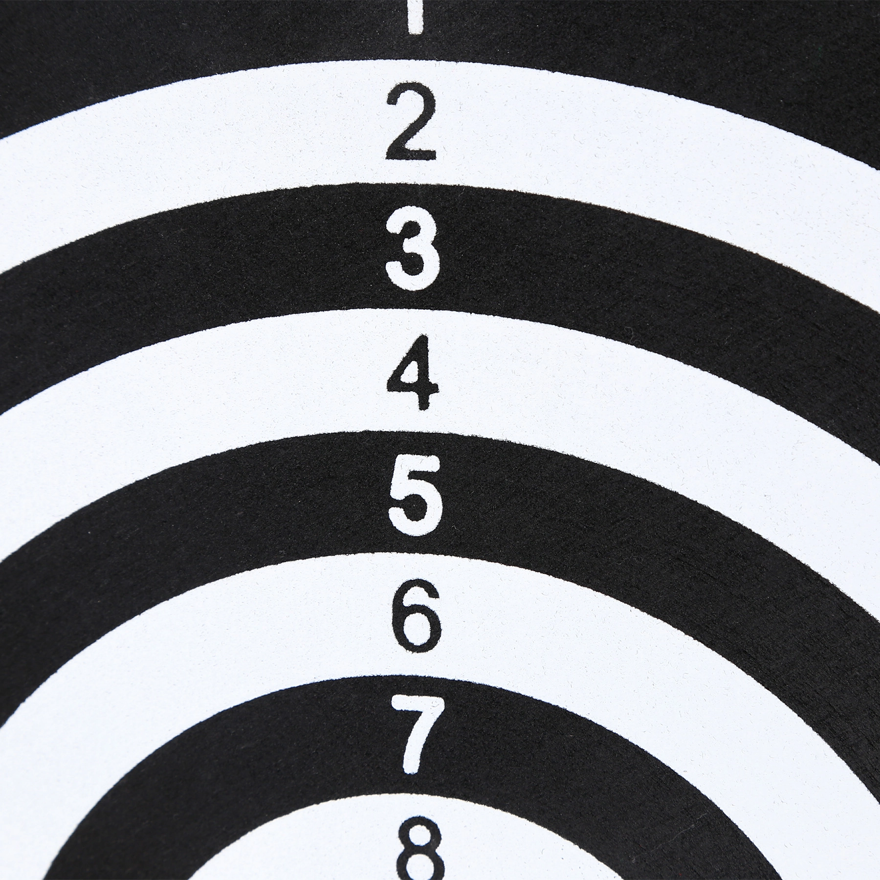 The set includes 6 steel darts with plastic flights and a stainless body for a secure grip, optimal balance, and a stable flight path. The pressed paper of the board allows darts to reliably penetrate the fields, which increases shot accuracy and ensures long service life.