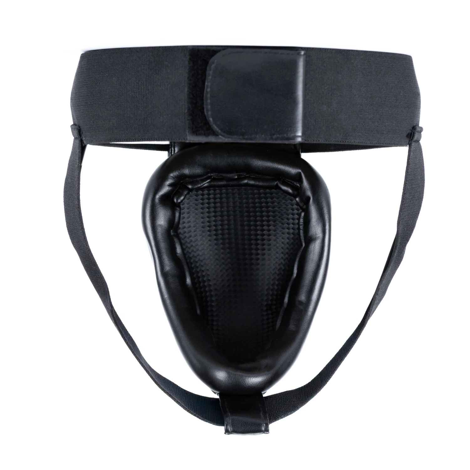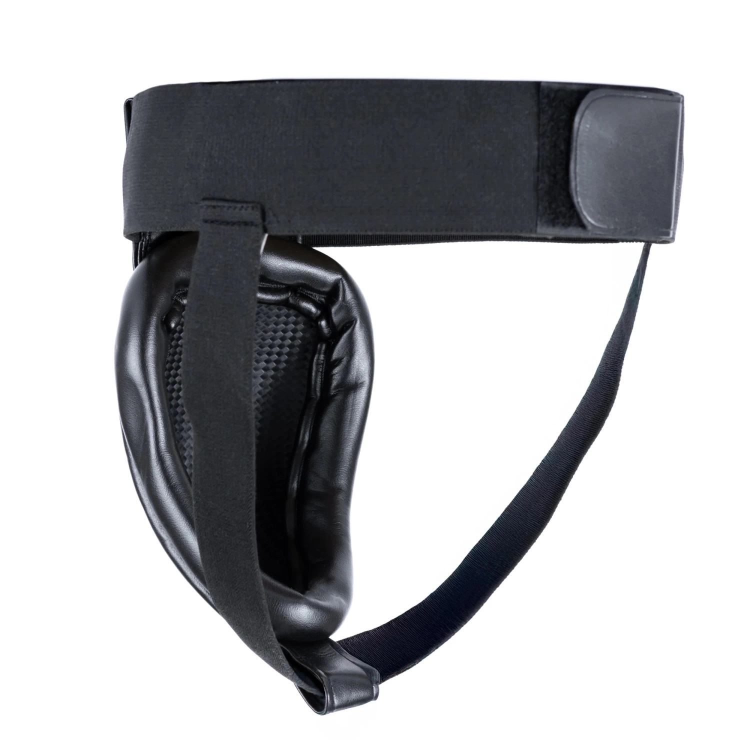 A wide elastic waistband, stabilizing straps, and hook-and-loop closure ensure the guard stays in place even during dynamic exchanges.