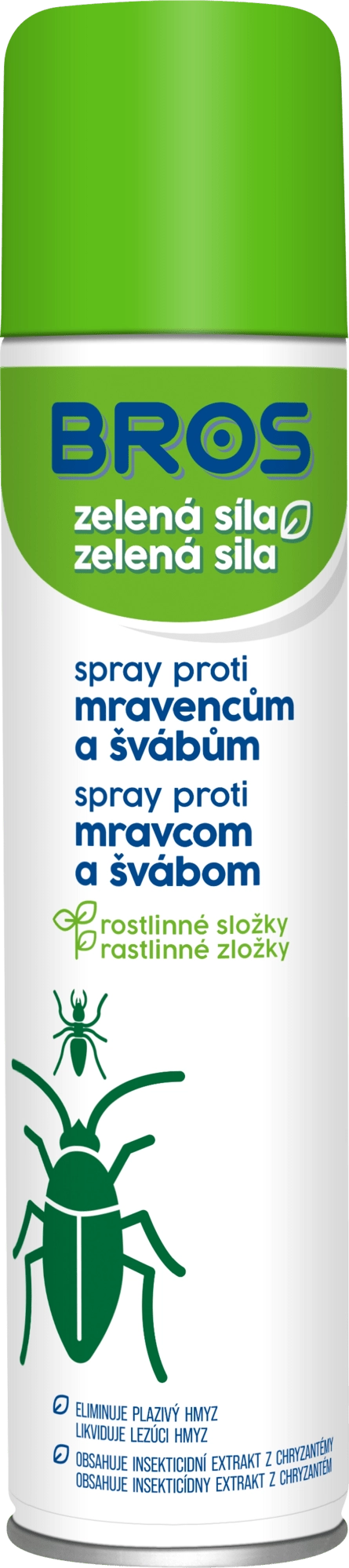Effective insecticidal spray Bros Green Power 300 ml with natural pyrethrum from chrysanthemum flowers reliably kills ants, cockroaches, as well as spiders and other crawling insects indoors. Easy application, fast action, and a natural active ingredient for comfortable use in the household.