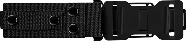 The versatile sheath made of reinforced plastic and nylon is MOLLE-compatible and allows for multiple carry options — on a belt, backpack, or tactical vest, horizontally or vertically. At the base of the handle, there is a glass breaker and a lanyard hole for added security.