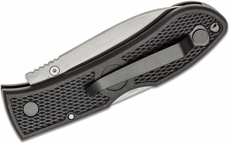 The Zytel handle in black has a pleasant texture for a firm grip even in more demanding conditions. The reversible pocket clip allows discreet pocket carry, and the lanyard hole expands attachment and retention options.