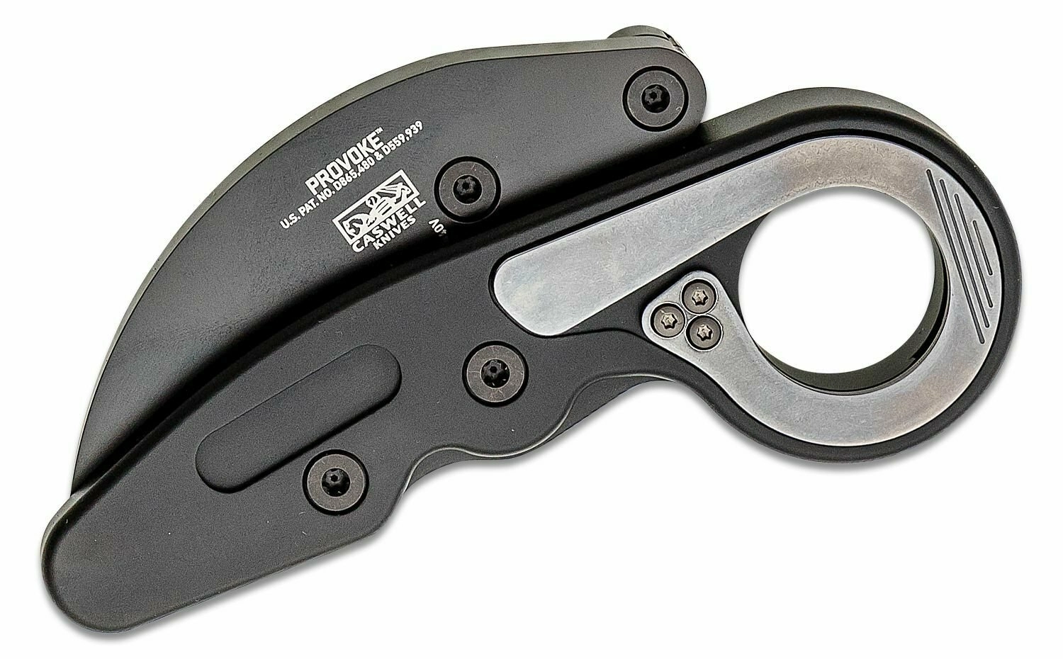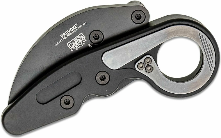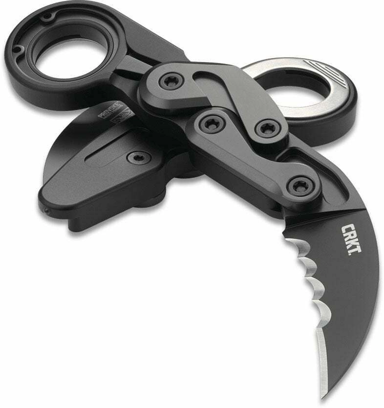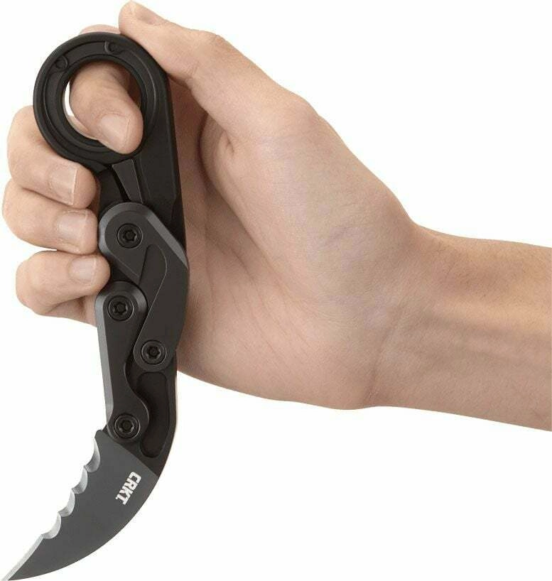 The CRKT PROVOKE VEFF SERRATIONS is a modern interpretation of the karambit designed by Joe Caswell. Its kinematic construction flips the blade forward with a single thumb press without changing your grip. This intuitive and safe operation is ideal for EDC and more demanding tasks. The black TiN coating on the D2 tool steel blade provides high hardness, cutting performance, and long-lasting edge retention.