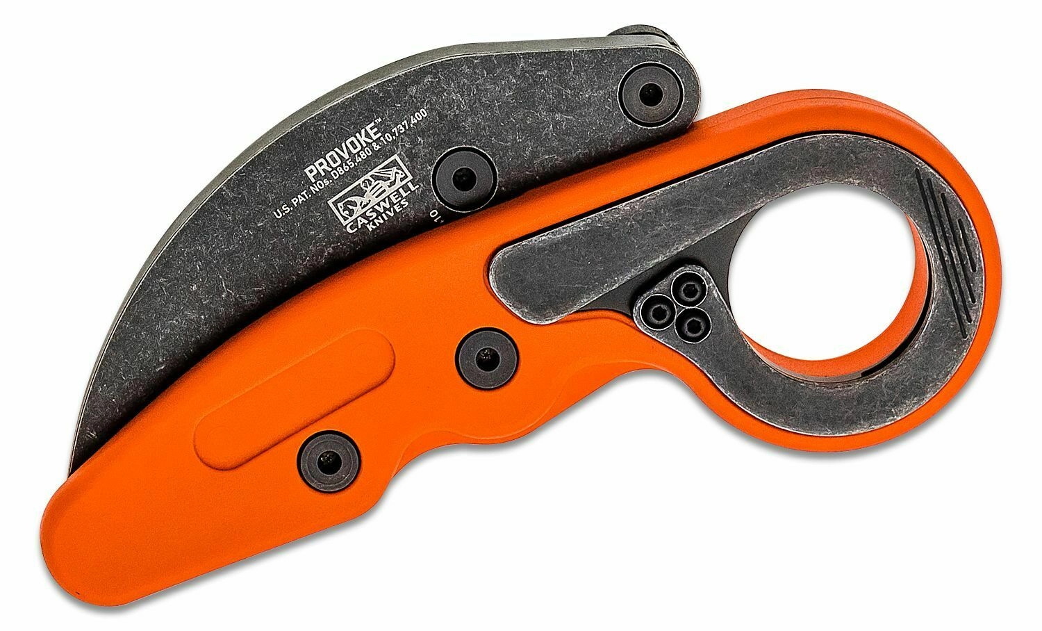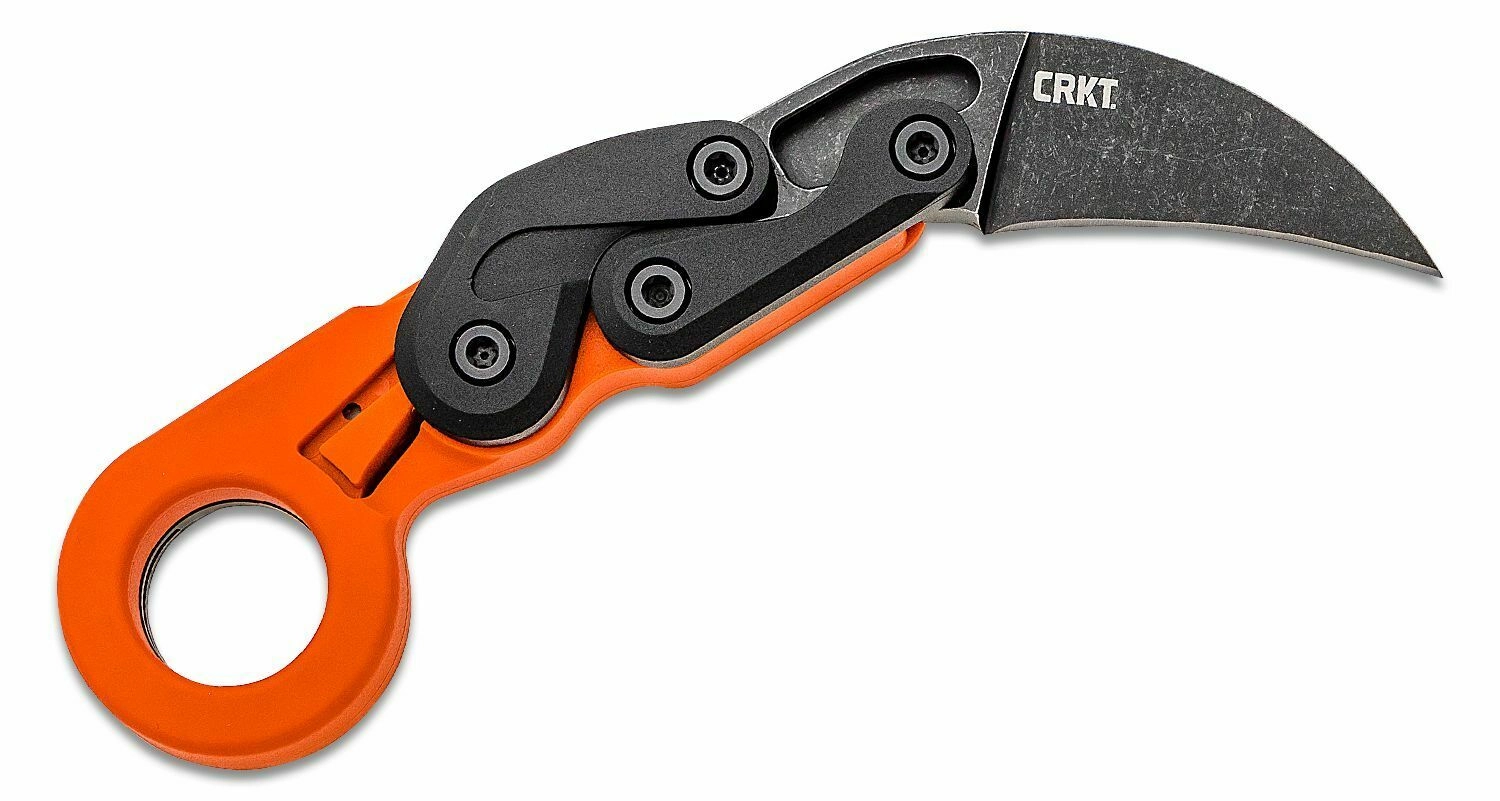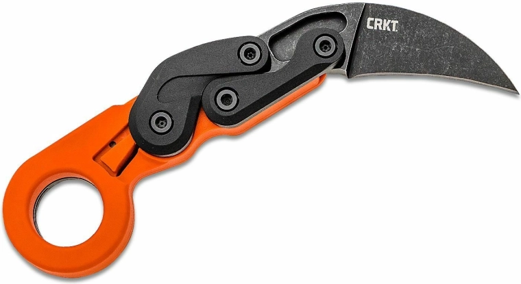The CRKT PROVOKE ORANGE is a modern karambit for everyday carry that excels with smooth and safe operation. The unique kinematic mechanism enables rapid opening with thumb pressure, smoothly bringing the blade into the working position with a solid lock. The stonewash finish reduces the visibility of scratches and increases durability with frequent use.