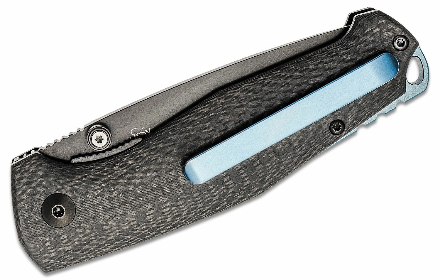 The ergonomically shaped carbon fiber handle with an elegant blue inlay fits the hand perfectly. A practical pocket clip enables discreet carry, and the lanyard hole expands attachment options. The knife is ideal for EDC, hiking, and light tasks.