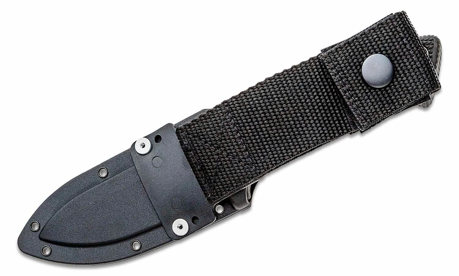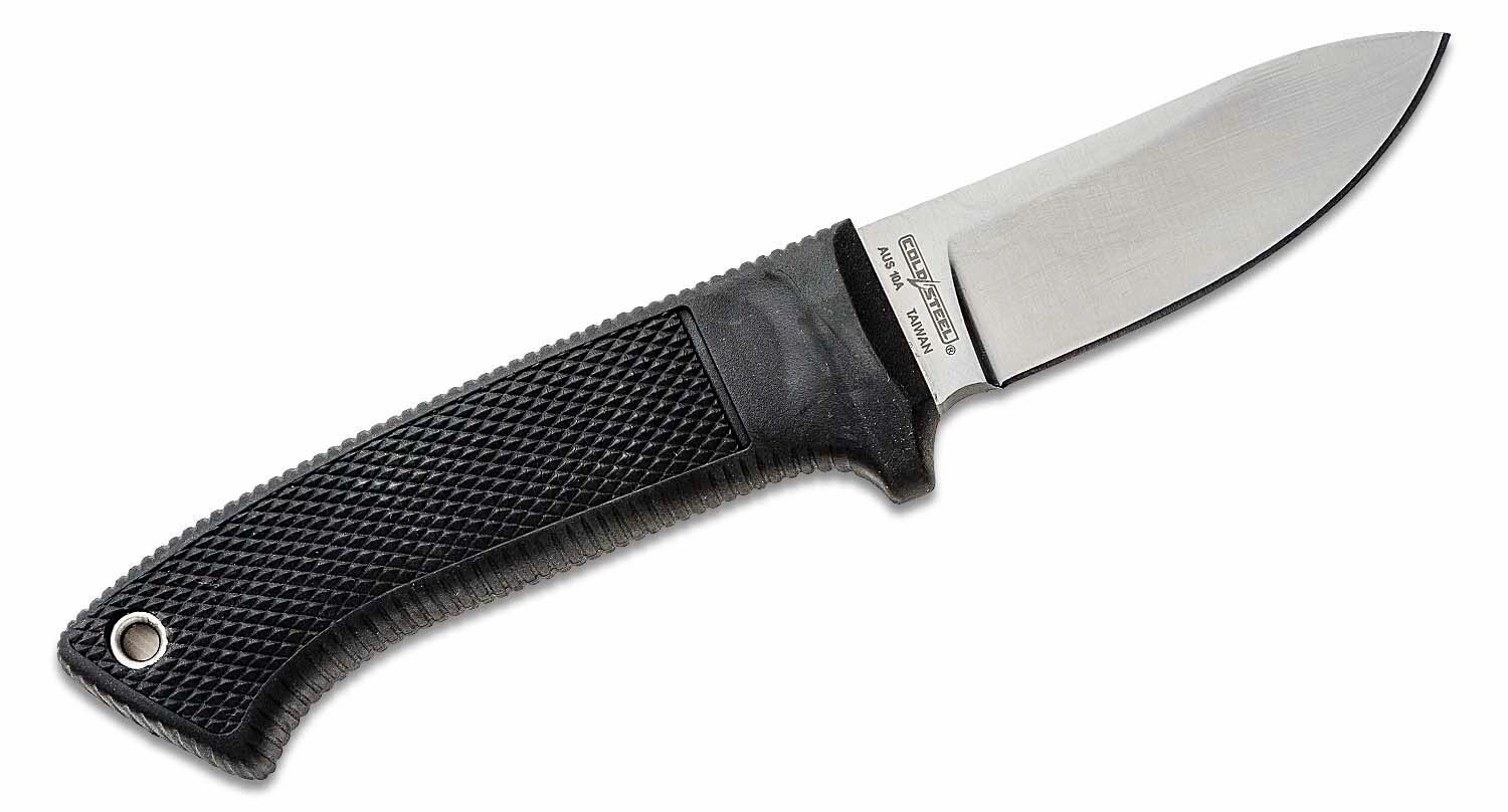 Compact and durable hunting knife Cold Steel Pendleton Hunter with a fixed drop point blade made of Japanese AUS-10A stainless steel delivers reliable performance in the field. The textured Kray-Ex handle ensures a secure grip even when wet, and the rugged Secure-Ex sheath enables safe carry and quick access.