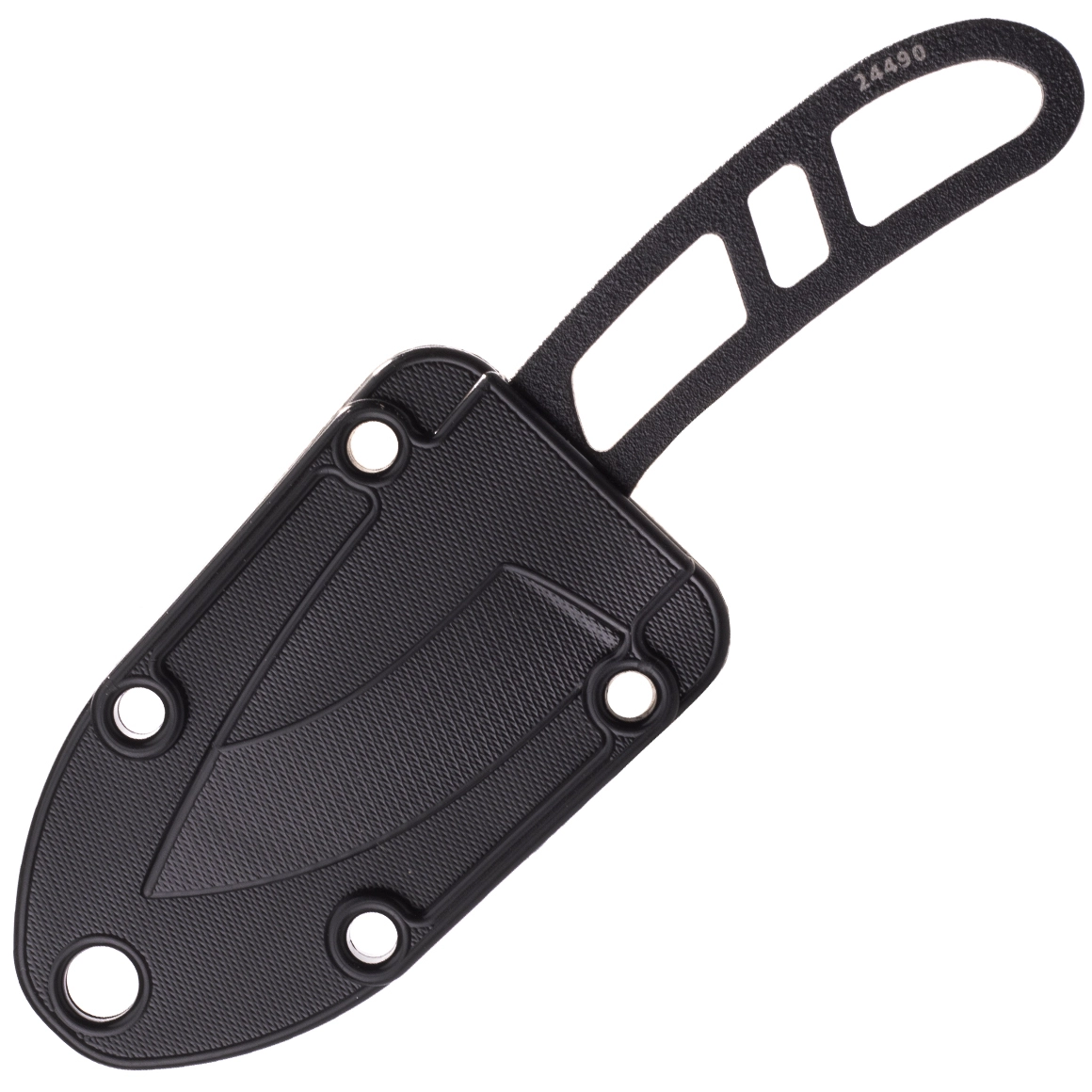 The compact neck knife ESEE Candiru is lightweight, durable, and designed for everyday carry, outdoor, and survival. The full-fledged blade made of 1095 carbon steel with a black protective coating delivers excellent cutting performance, while the skeletonized handle with the option to wrap with paracord reduces weight and improves grip. A lightweight plastic/kydex sheath is included for safe, versatile carry on the neck or on gear.