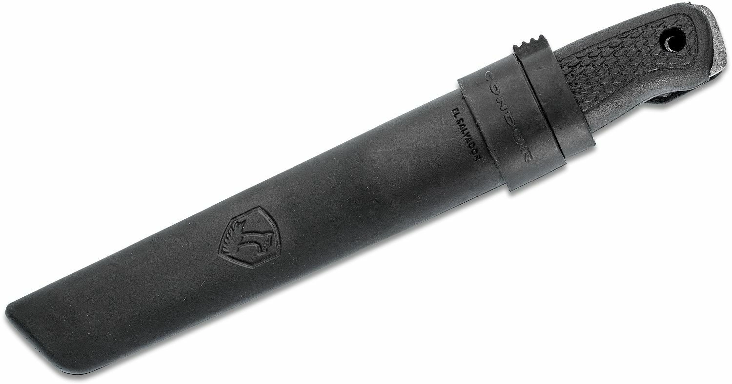 The versatile outdoor knife Condor Terrasaur Black designed by Joe Flowers is ideal for bushcraft, hunting, and adventure trips. It offers a sturdy 1095 carbon steel blade, a durable polypropylene handle, and a lightweight sheath system for both right- and left-side carry.
