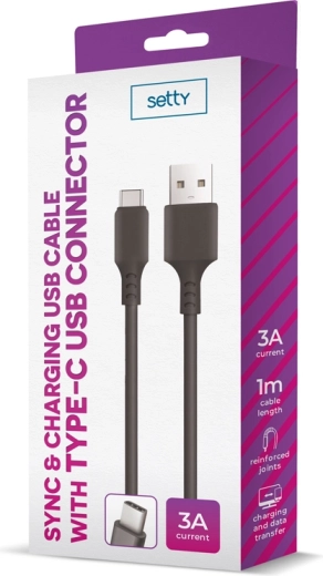Setty USB–USB‑C cable 1 m 3 A black