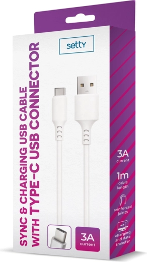 Looking for a reliable cable for everyday use? The Setty USB–USB‑C cable with a length of 1 m easily connects your smartphone, tablet, or other accessories to a charger or computer. It supports current up to 3 A for fast and stable charging while also enabling efficient data transfer.