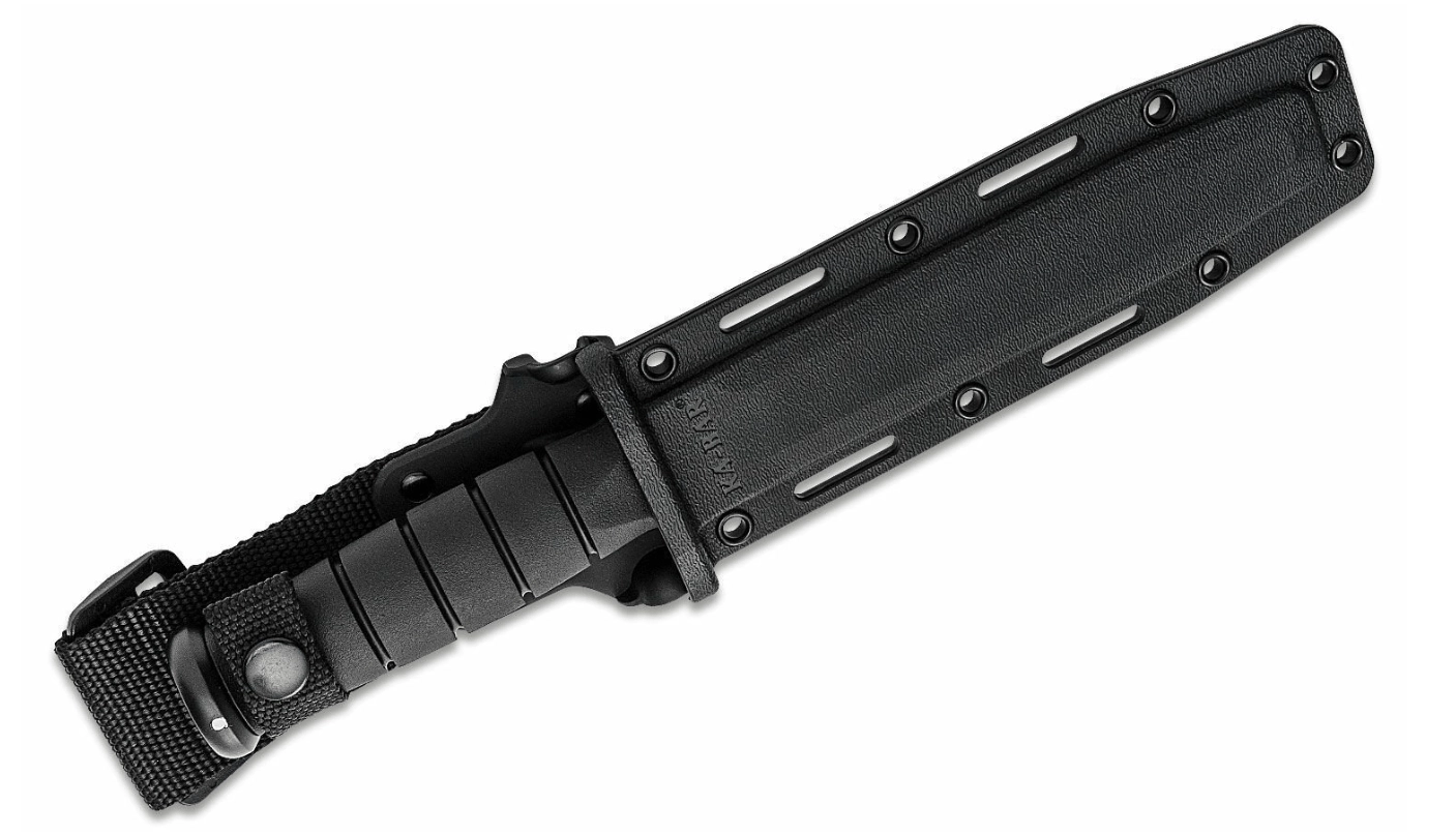 The KA-BAR Full Size Black is a dependable knife for outdoor activities, hiking, and tactical deployment. Building on the proven USMC military design, it excels in durability, functionality, and confidence in any situation. The Clip Point blade with a plain edge and black finish enhances corrosion resistance and reduces glare.