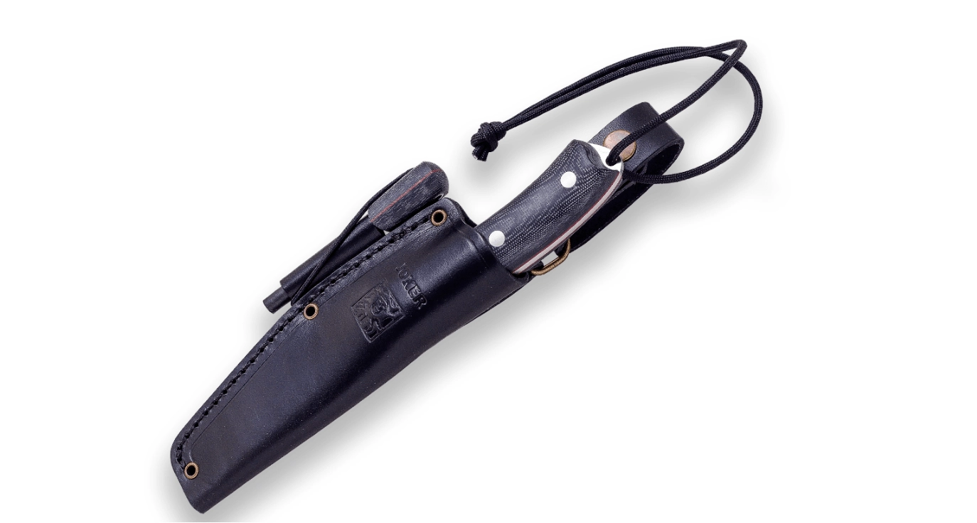 - Complete kit: leather sheath, fire starter, and 2 m of paracord included.