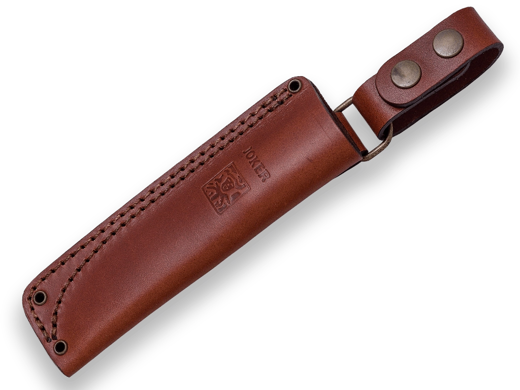 The universal outdoor knife Joker EMBER with a Scandinavian (Scandi) grind is a reliable companion for the outdoors and at home. It offers a robust full-tang construction, a 14C28N stainless steel blade for excellent edge retention and corrosion resistance, an ergonomic walnut handle with a lanyard hole, and a quality leather sheath. The package also includes 2 m of paracord for practical use in the field.