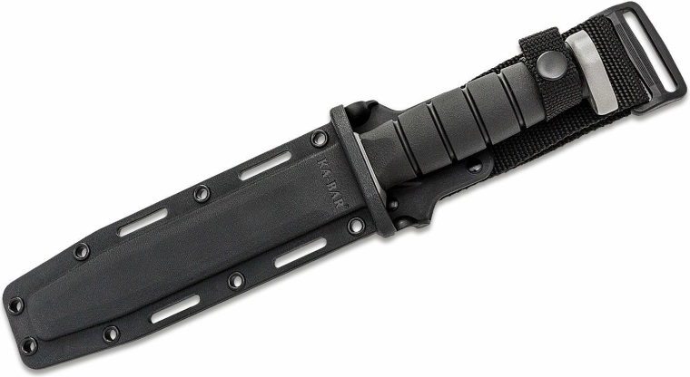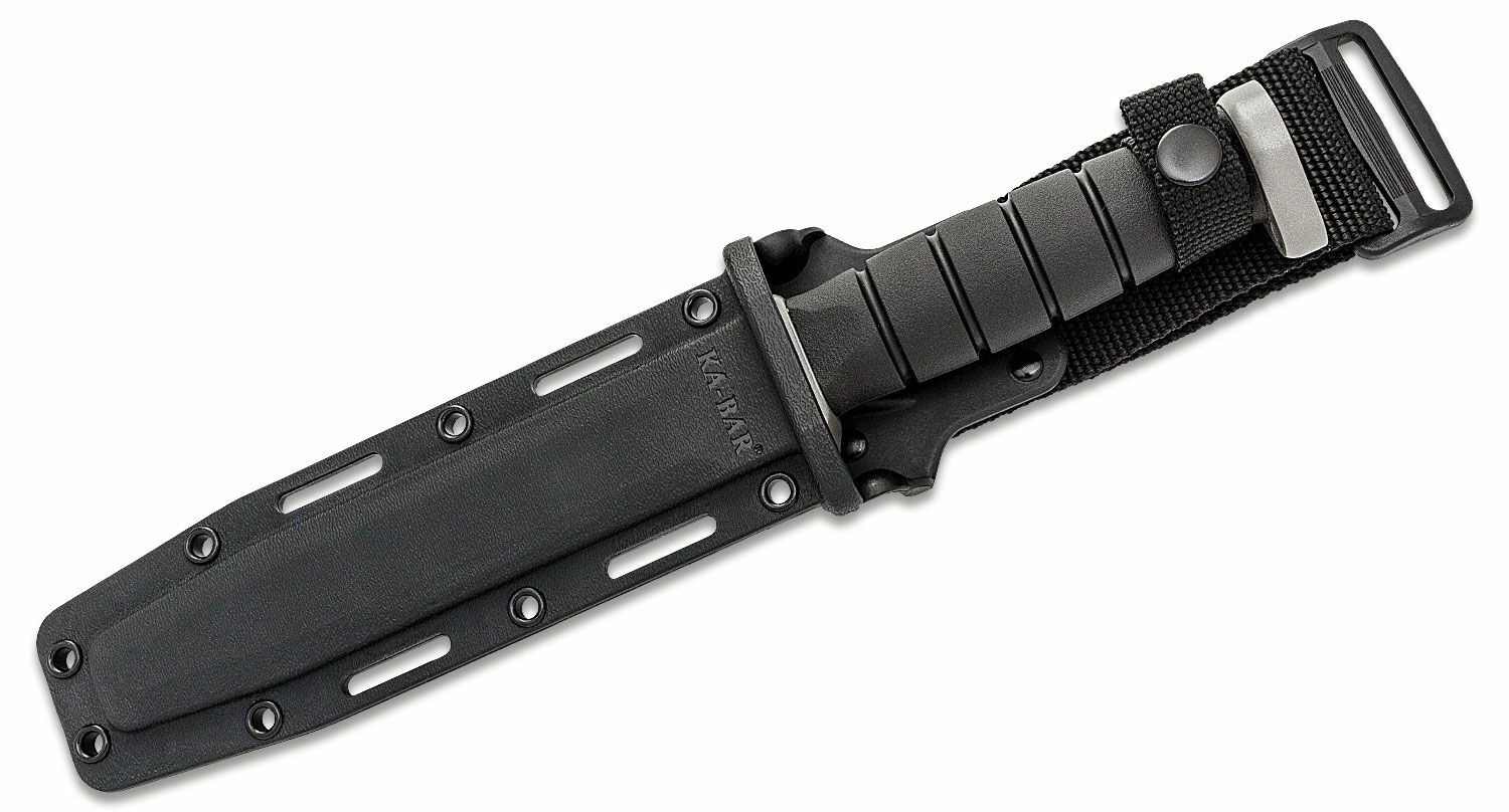 The KA-BAR Extreme Fighting/Utility is a tactical, all-purpose knife and a reliable companion for hunting, camping, and bushcraft. It features a fixed blade made from tool steel D2 with a black finish, an ergonomic Kraton G handle for a secure grip, and comes with a durable Kydex sheath for safe carry.