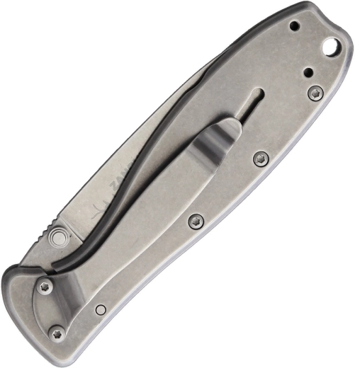 The thin and compact Esee Zancudo pocket knife is a great choice for everyday carry (EDC). It features an AUS-8 stainless steel blade with a stonewash finish, a reliable Framelock, and a lightweight FRN handle in leaf green.