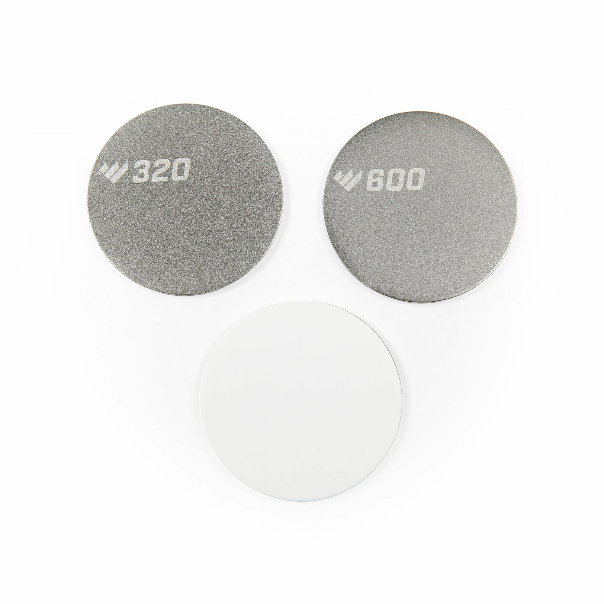 Diamond discs in 320 and 600 grit for fast reprofiling and touch-ups, finished with fine ceramic honing.