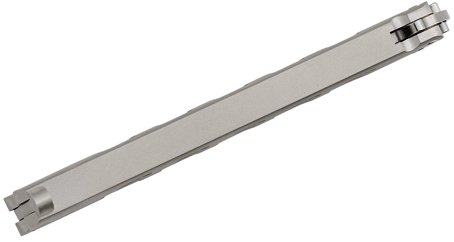 A mechanical latch at the end of the handle locks the knife firmly in both the open and closed positions for safe carry and handling.