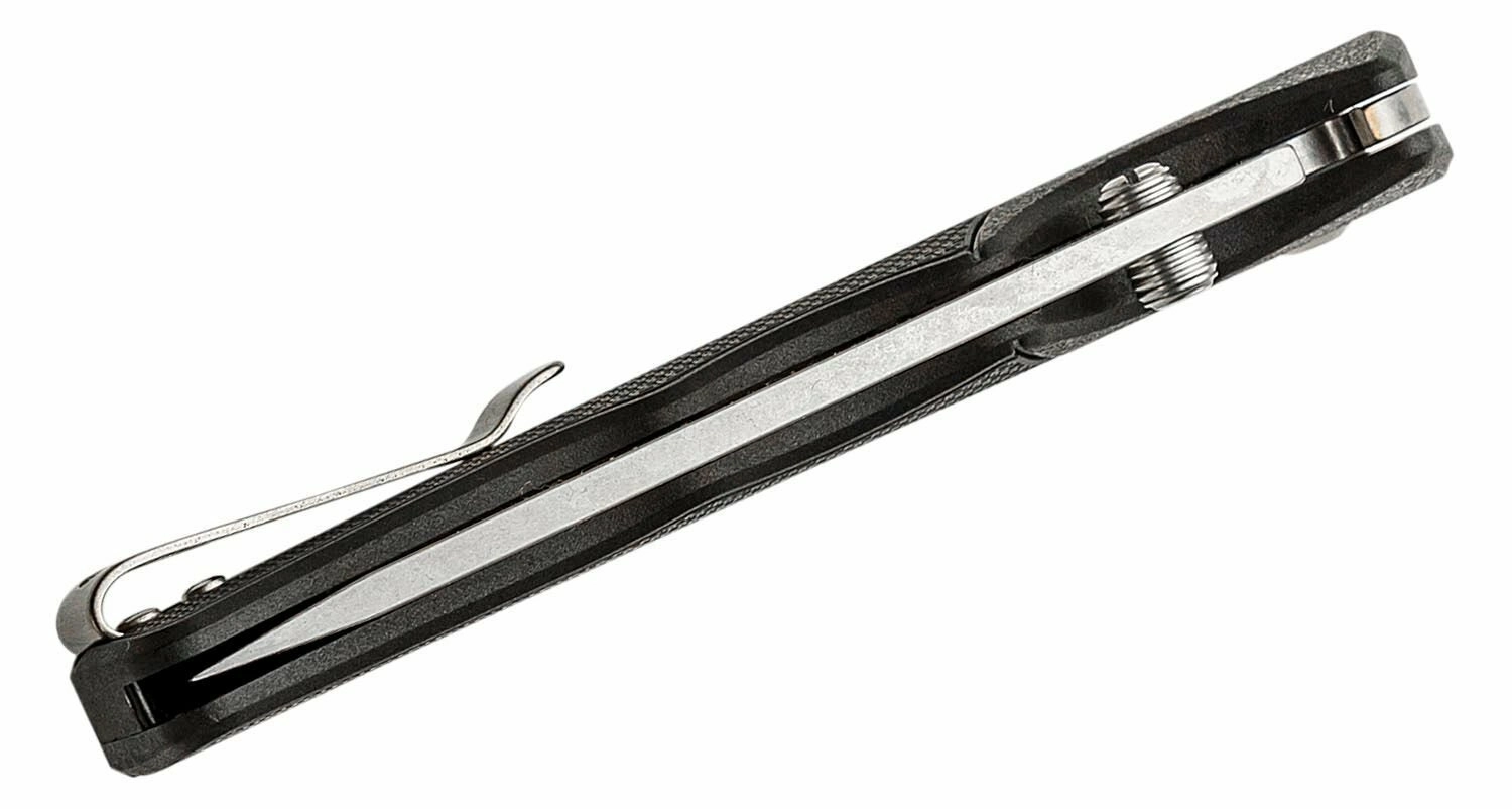 The 4116 stainless steel blade with Tanto geometry delivers excellent tip penetration and clean cuts. The stonewash surface better masks minor scratches and improves wear resistance.