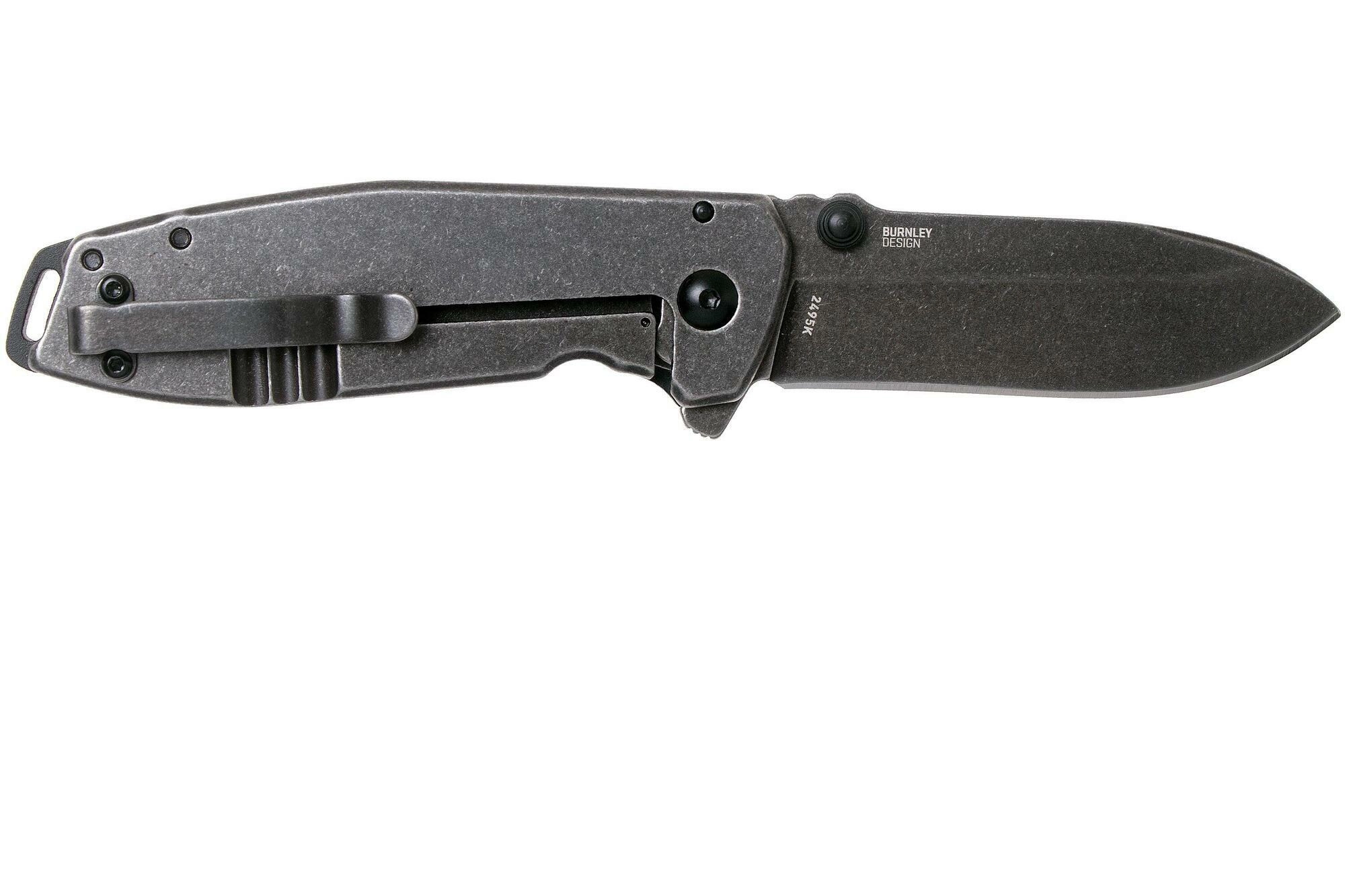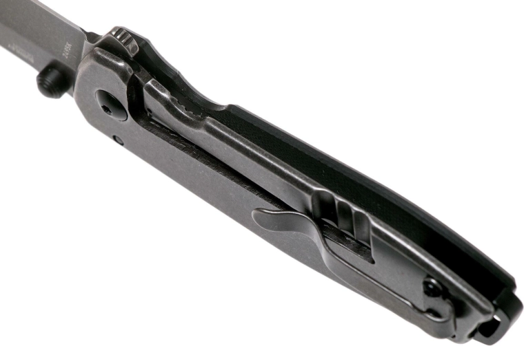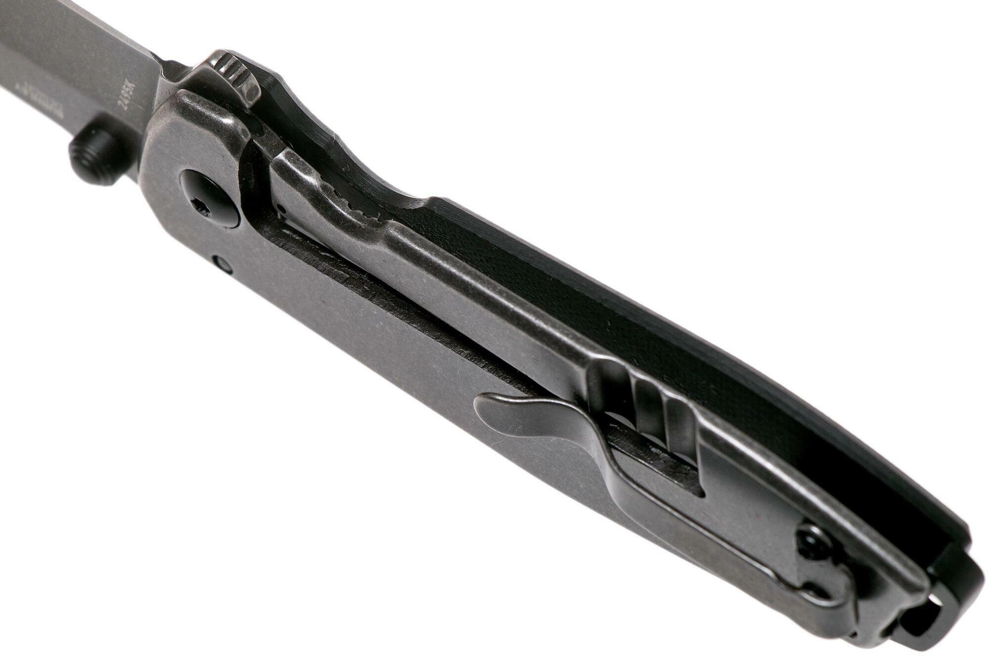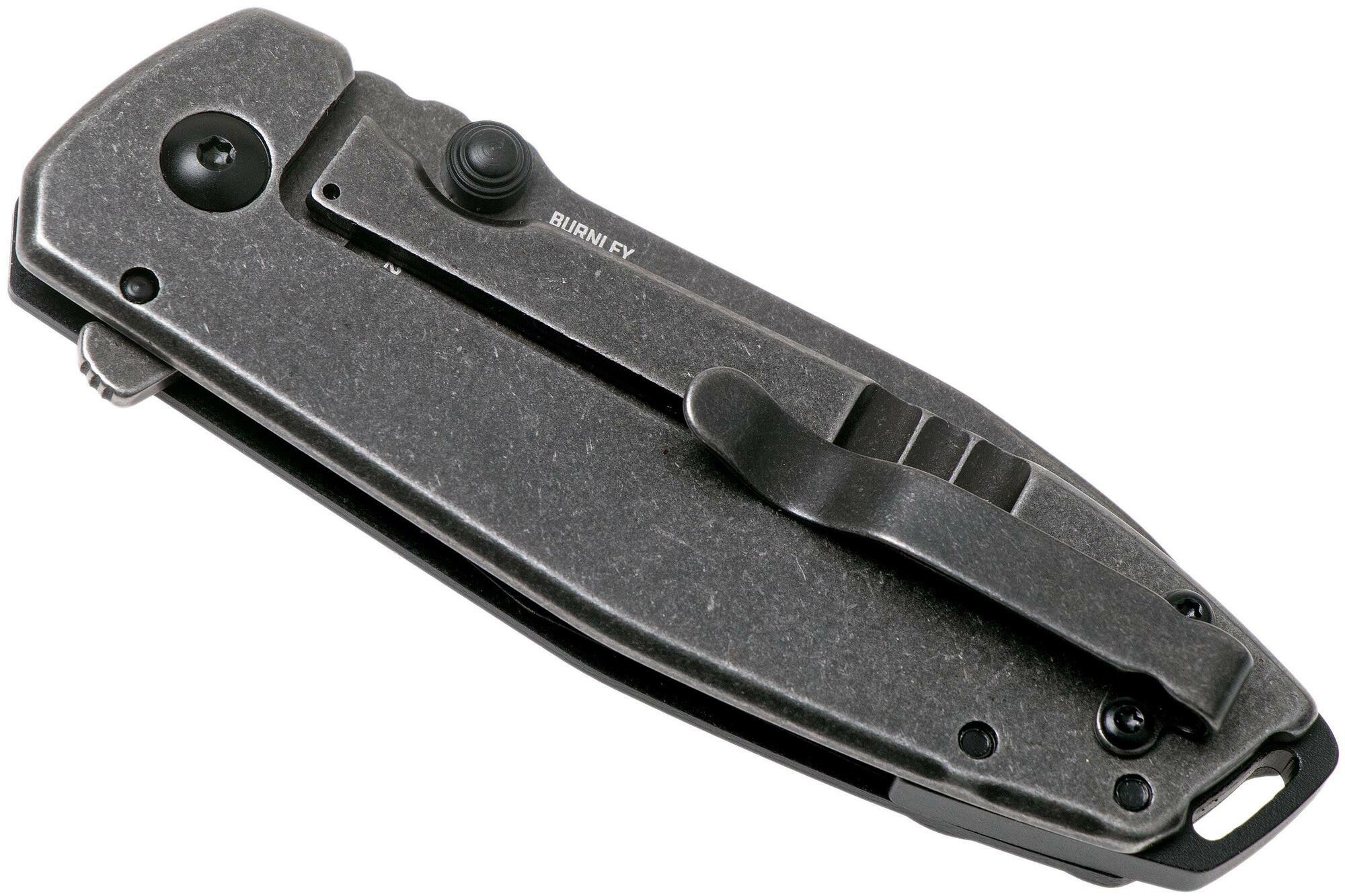 Tool steel D2 holds an edge for a long time, and the Black Stonewash finish reduces visible wear.