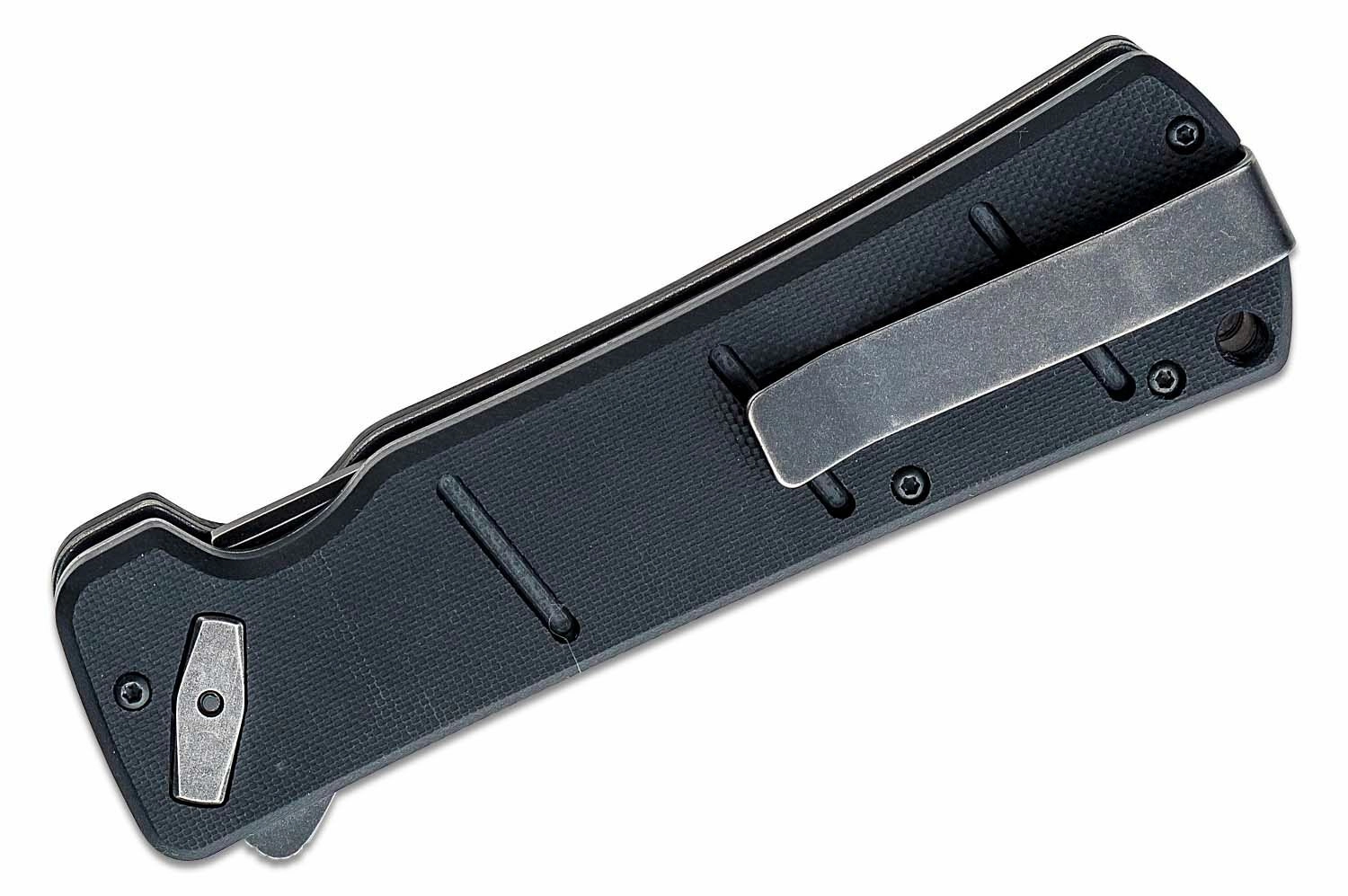 A D2 steel blade with a Black Stonewash finish and textured G10 scales ensure long service life and a confident grip.