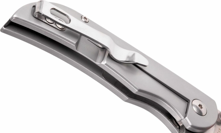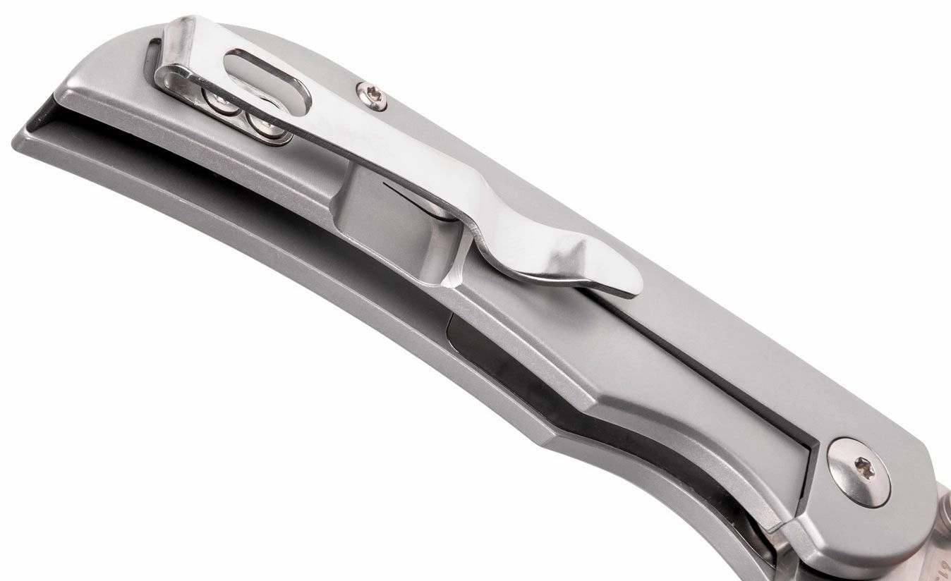 The robust all-stainless handle with a matte surface fits the hand well, and the Frame Lock keeps the blade solidly in place while working. A practical pocket clip enables discreet and secure carry in the pocket.