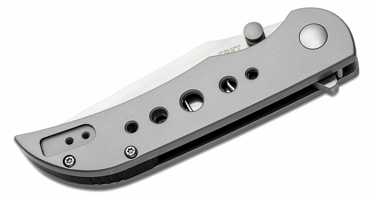 The compact EDC knife CRKT Oxcart Silver by Robert Carter combines a durable all-stainless construction, a smooth AUS-8 blade with a satin finish, and fast one-handed opening via flipper or thumb stud. A Frame Lock and pocket clip ensure safe and comfortable everyday carry.