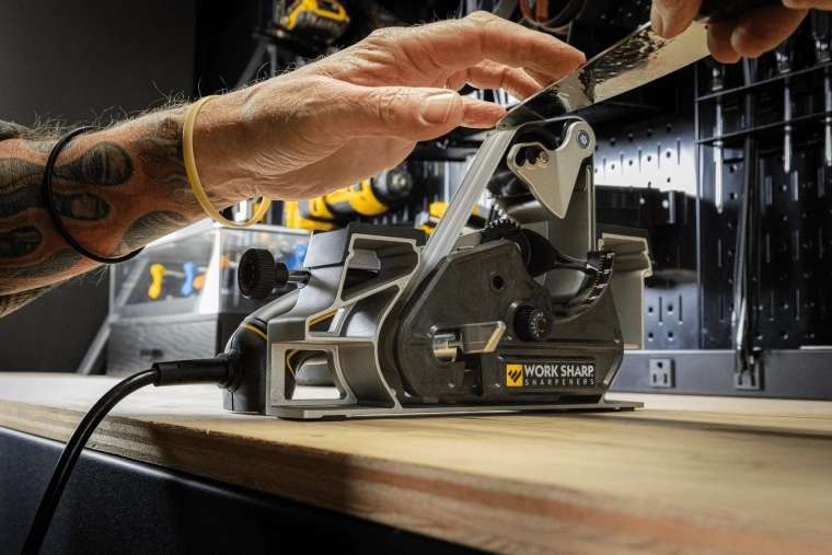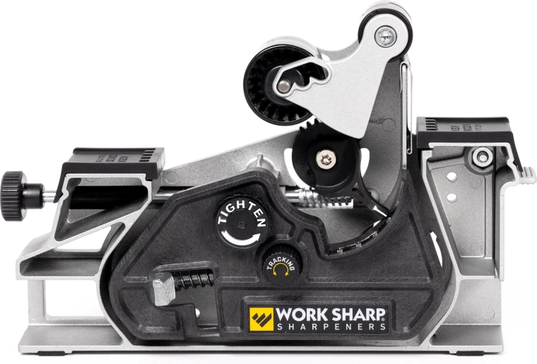 The Work Sharp Blade Grinder Mk2 attachment transforms your Ken Onion Edition Knife & Tool Sharpener Mk.2 into a powerful benchtop system for horizontal sharpening. With fully adjustable edge angles from 10° to 35° and larger 1" x 18" belts, you get maximum precision, control, and repeatability when sharpening kitchen, outdoor, and work knives.