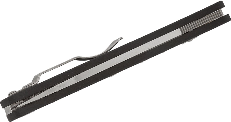 The spine-mounted lock enhances safety during use. Repositionable clip for right- or left-side carry and a lanyard hole.