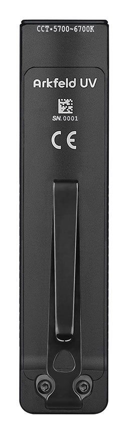 The compact, premium pocket flashlight OLIGHT Arkfeld UV Sunburst Limited combines a powerful white LED up to 1,000 lm with a 365 nm / 580 mW UV light for inspection and detection. The flat metal design with clip and magnetic tail ensures comfortable carry and hands-free use. Charging is quick and easy thanks to the MCC1A magnetic USB and the built-in 1050 mAh battery.