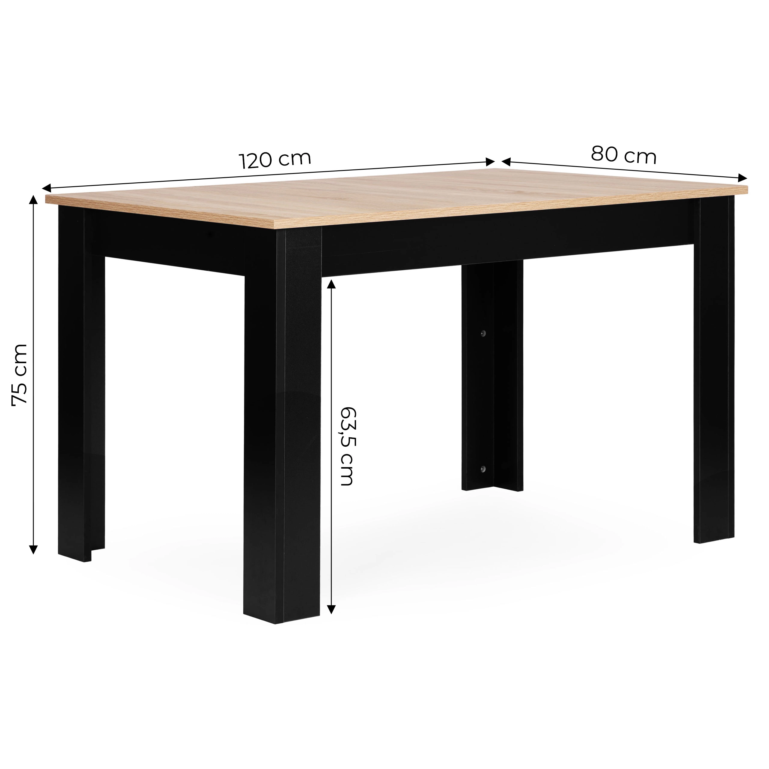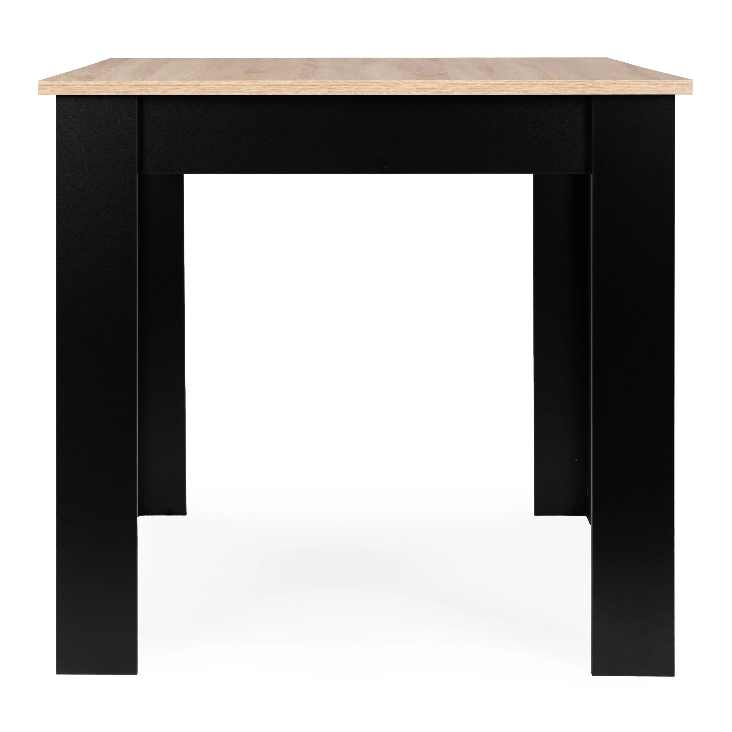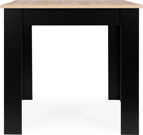 An elegant and functional table for the kitchen or dining room in a modern two-tone design combines the natural look of a sonoma-finish tabletop with contrasting black legs. Its universal design suits modern and Scandinavian interiors and creates a pleasant place for shared moments over breakfast, coffee, or family dinners.