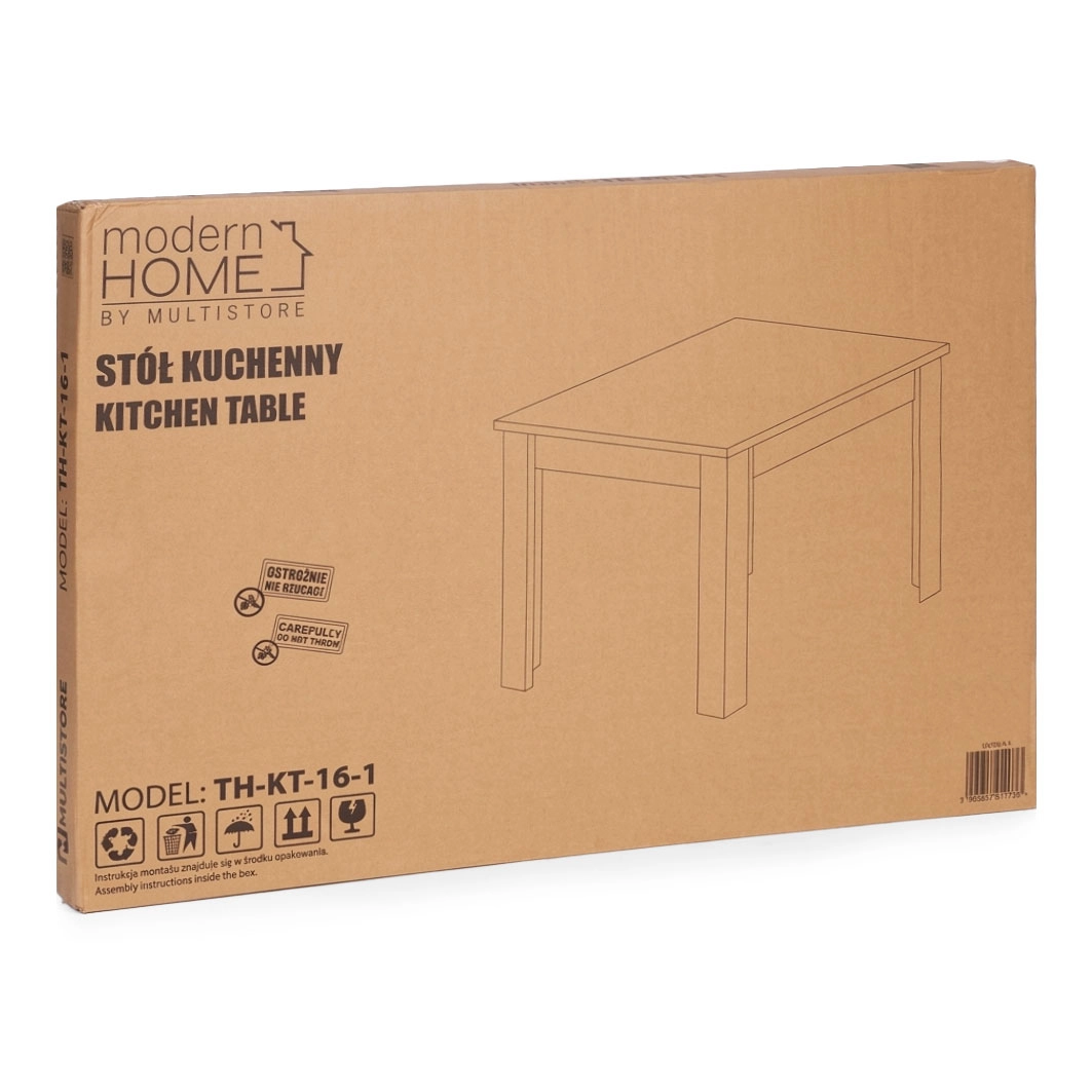 The practical ModernHome dining table for 4 people offers a robust MDF construction with a melamine surface in a sonoma oak finish. With dimensions of 120 × 80 cm it provides plenty of space for everyday dining, is scratch-resistant, easy to clean, and stable thanks to solid legs and non-slip feet.